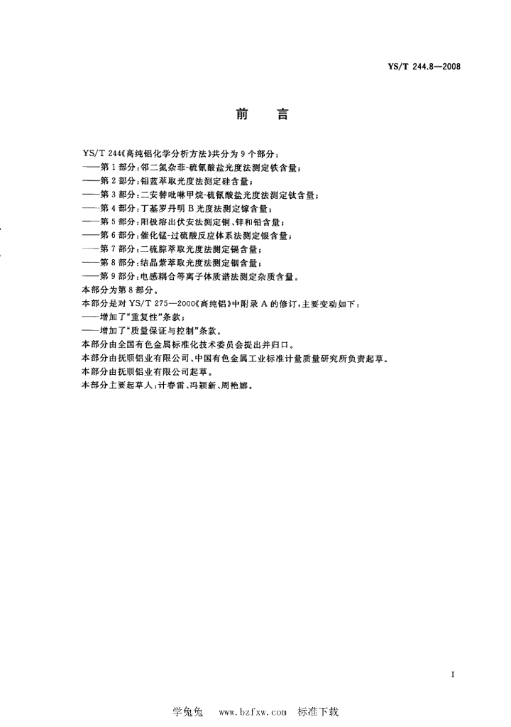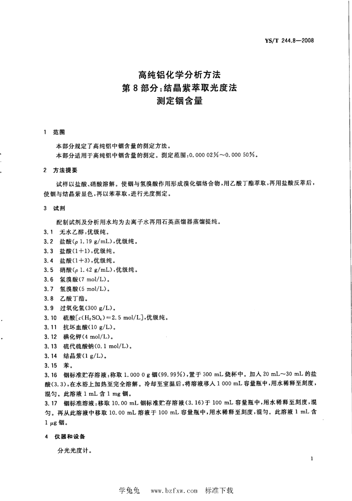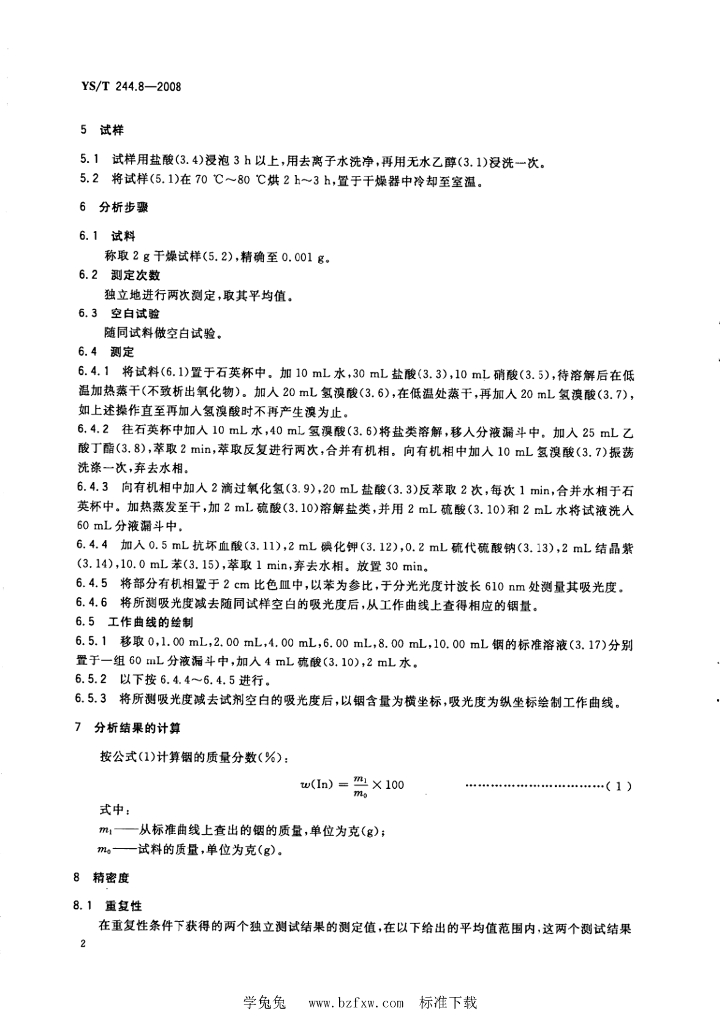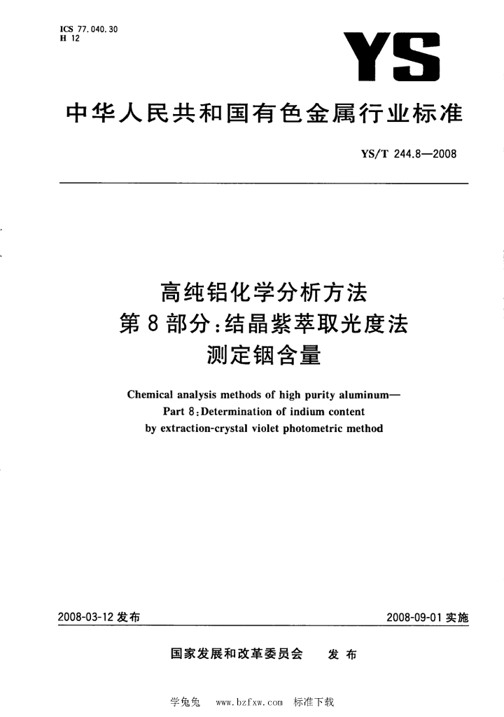 YS/T 244.8-2008 高纯铝化学分析方法 第8部分: 结晶紫萃取光度法测定铟含量