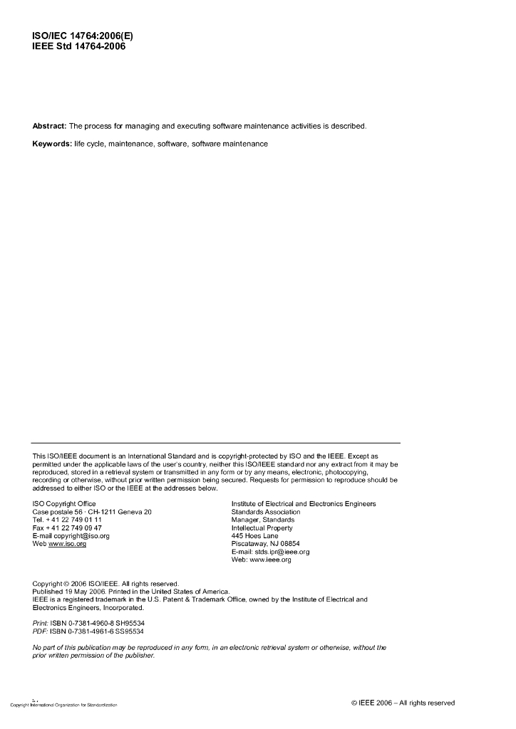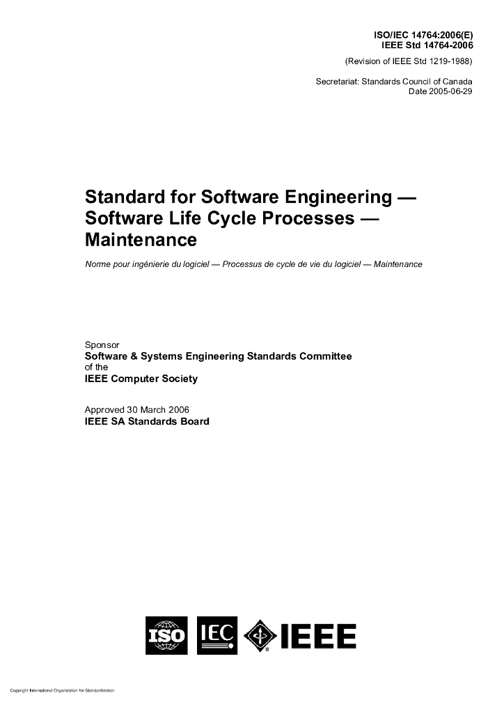 ISO/IEC 14764-2006 软件工程 软件生命周期过程 维护