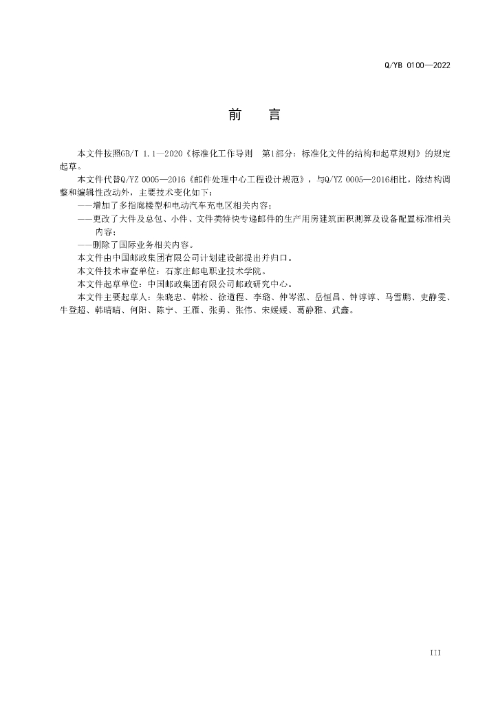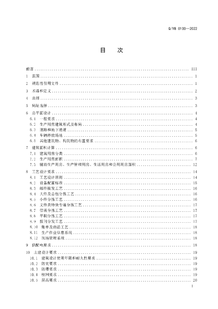 Q/YB 0100-2022 国内邮件处理中心工程设计规范