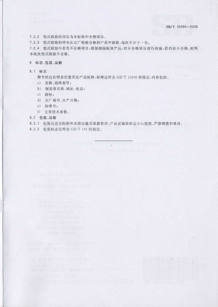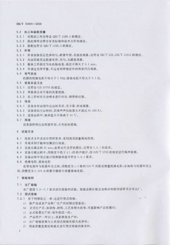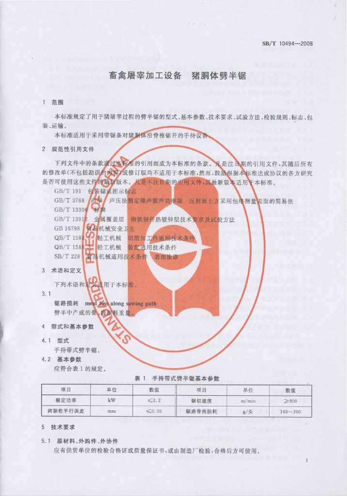 SB/T 10494-2008 畜禽屠宰加工设备 猪胴体劈半锯