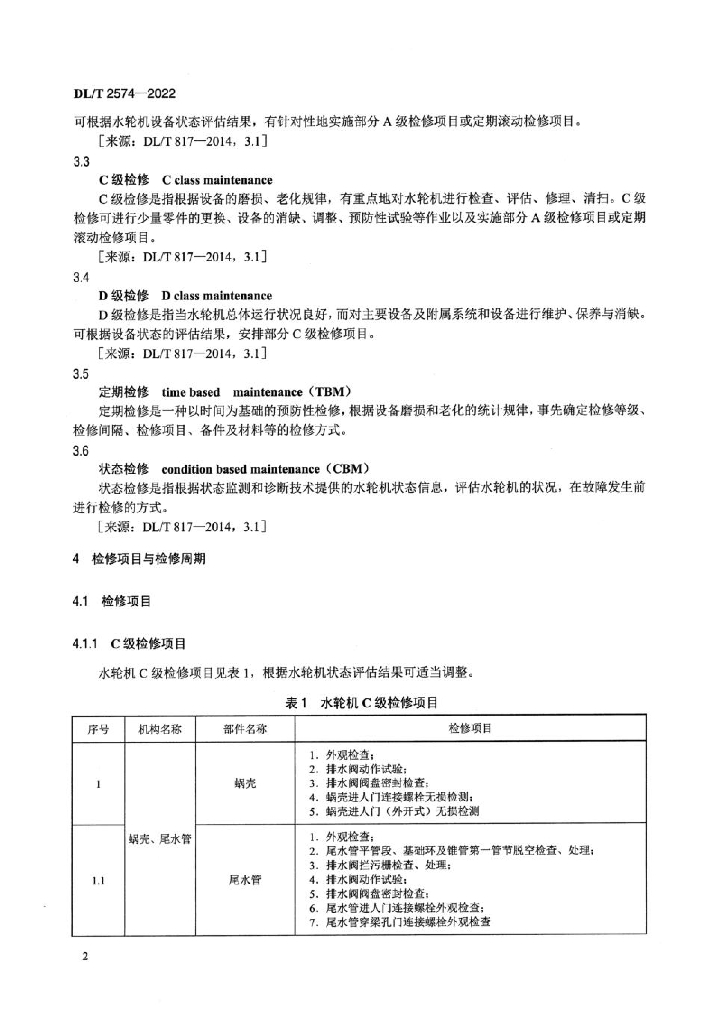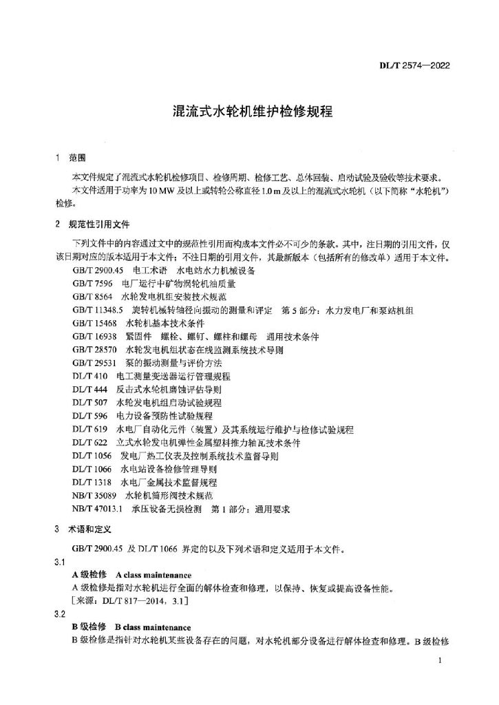 DL/T 2574-2022 混流式水轮机维护检修规程