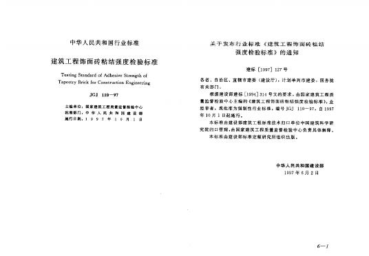 JGJ 110-1997 建筑工程饰面砖粘结强度检测标准