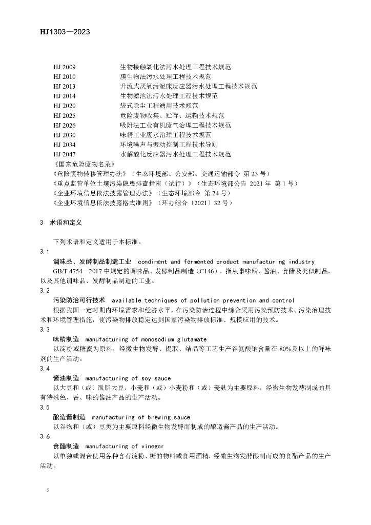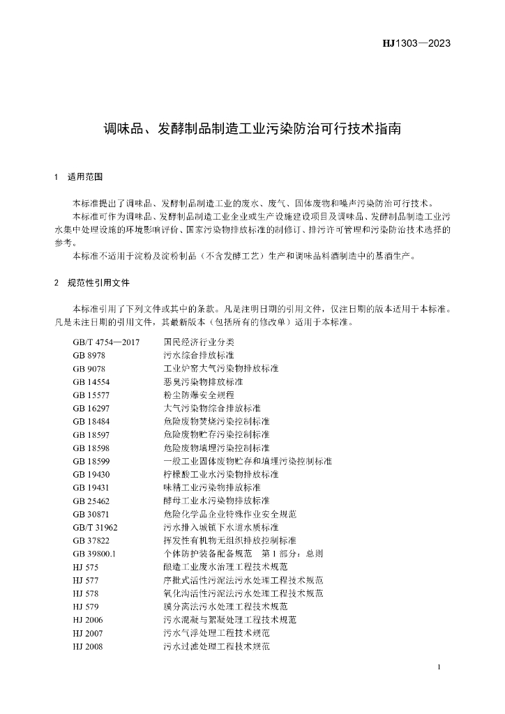 HJ 1303-2023 调味品、发酵制品制造工业污染防治可行技术指南
