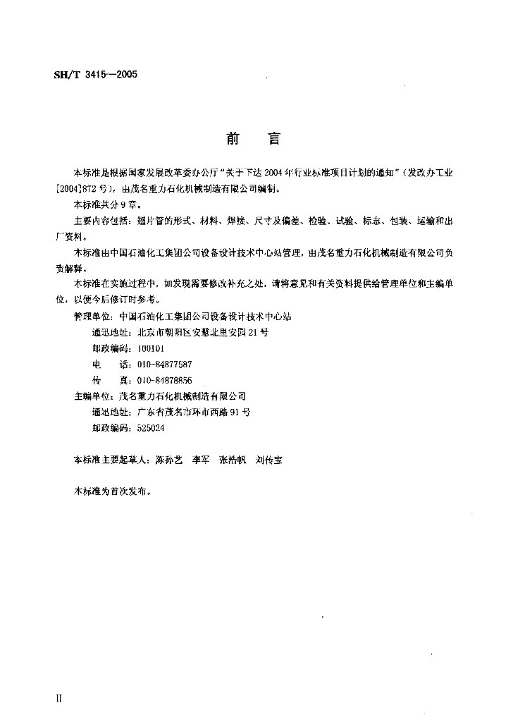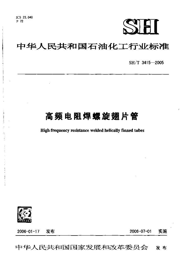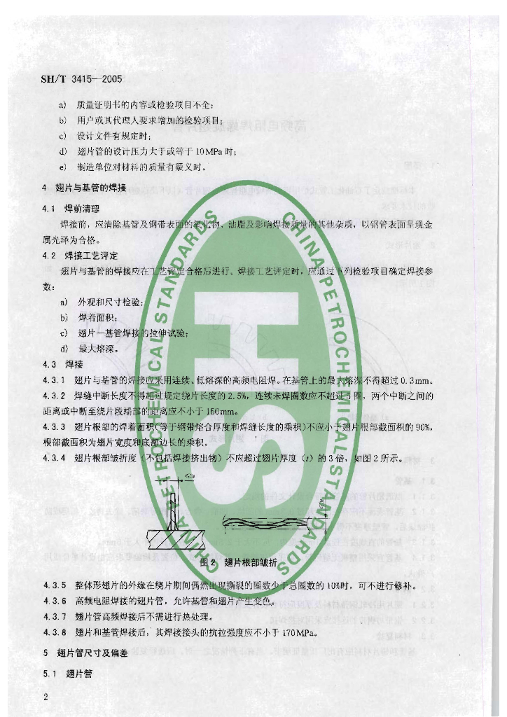 SH/T 3415-2005 高频电阻焊螺旋翅片管