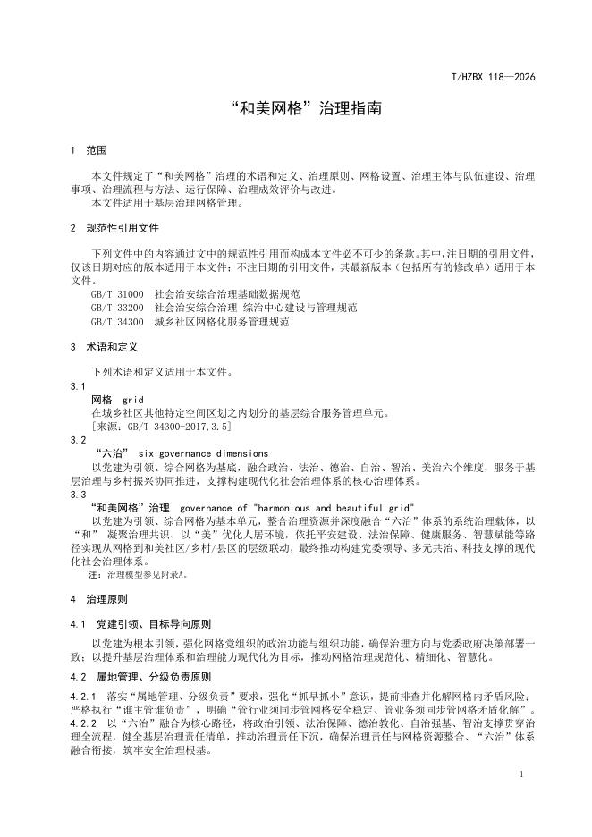 T/HZBX 118-2026 “和美网格”治理指南