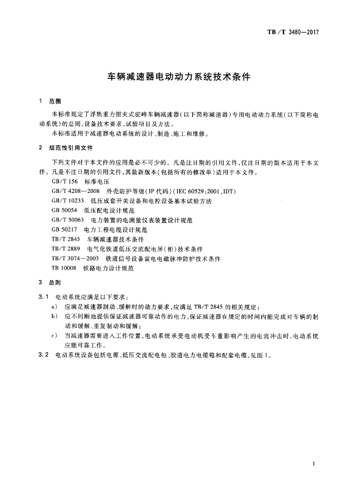 TB/T 3480-2017 车辆减速器电动动力系统技术条件
