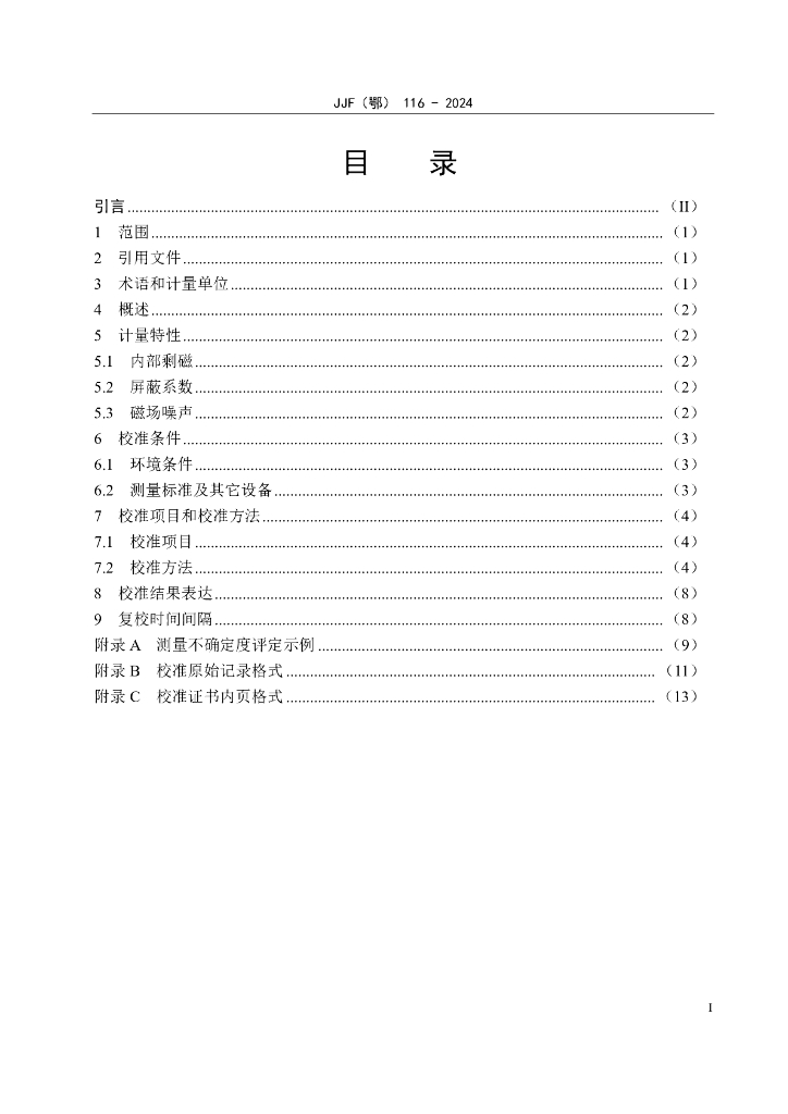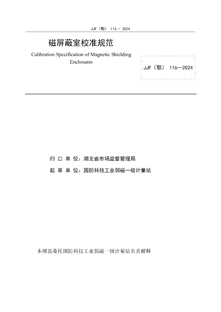 JJF(鄂)116-2024 磁屏蔽室校准规范