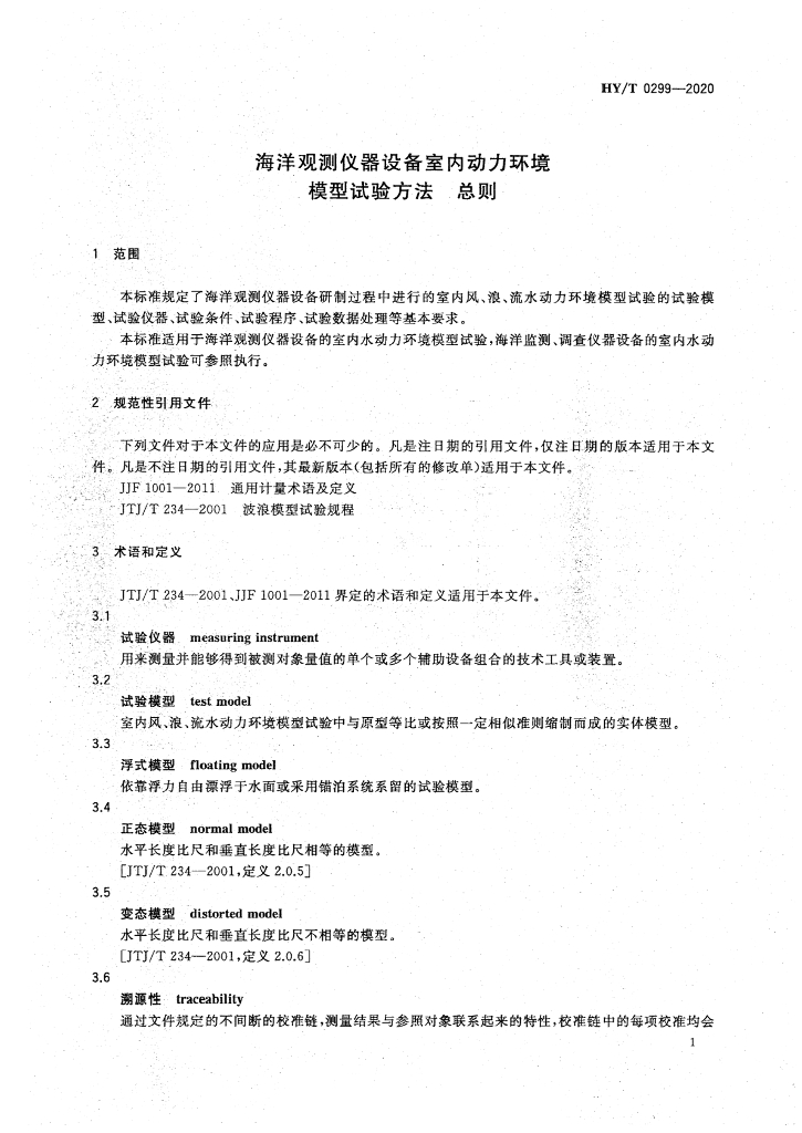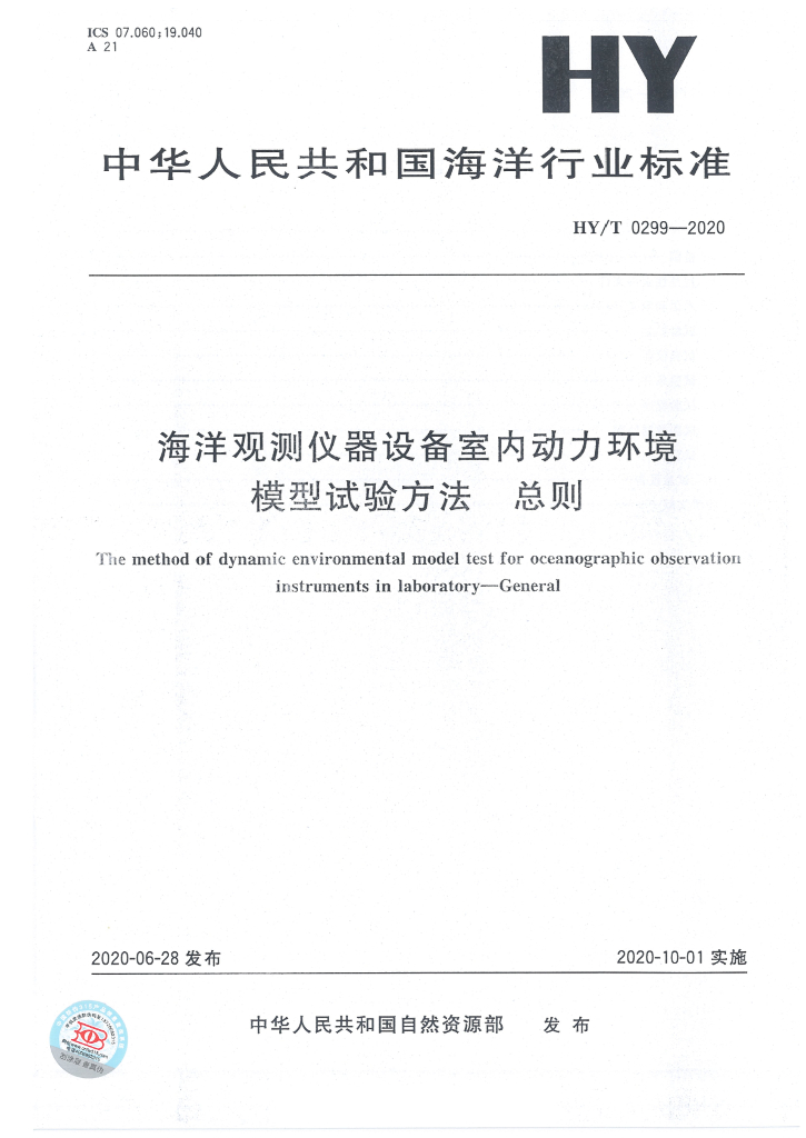 HY/T 0299-2020 海洋观测仪器设备室内动力环境模型试验方法 总则