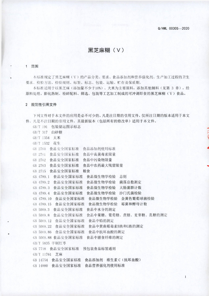 Q/HWL 0030S-2020 黑芝麻糊(V)