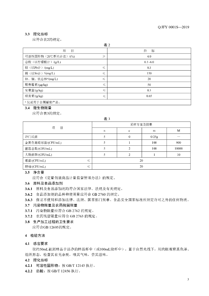 Q/JFY 0001S-2019 植物饮料