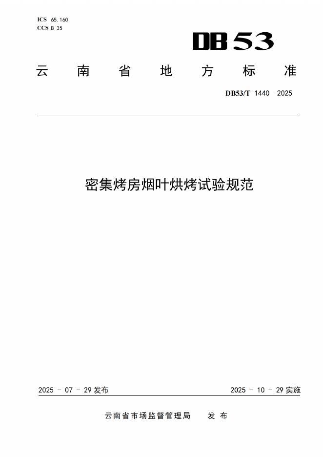 DB53/T 1440-2025 密集烤房烟叶烘烤试验规范