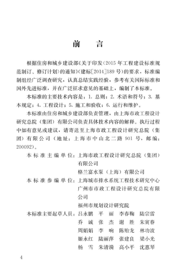上海市政工程设计研究总院(集团)有限公司、格兰富水泵(上海)有限公司、上海城市排水系统工程技术研究中心、广州市市政工程设计研究总院有限公司、福州市规划设计研究院