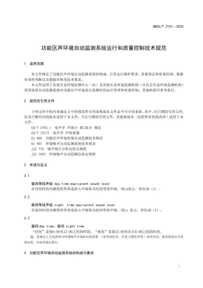 DB36/T 2151-2025 功能区声环境自动监测系统运行和质量控制技术规范