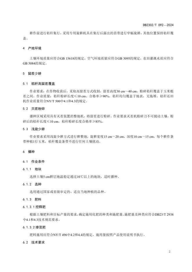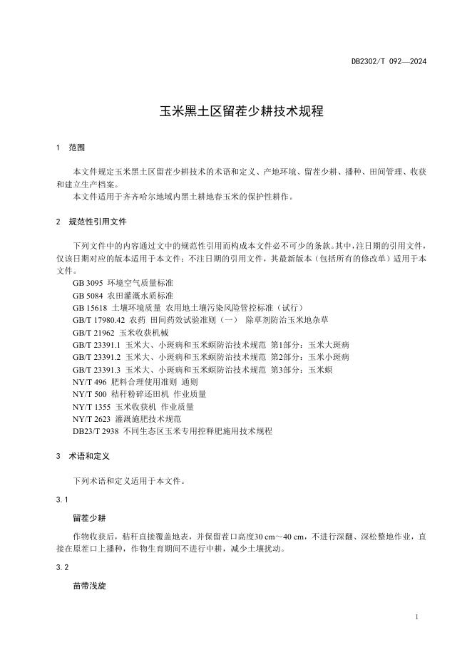 DB2302/T 092-2024 玉米黑土区留茬少耕技术规程