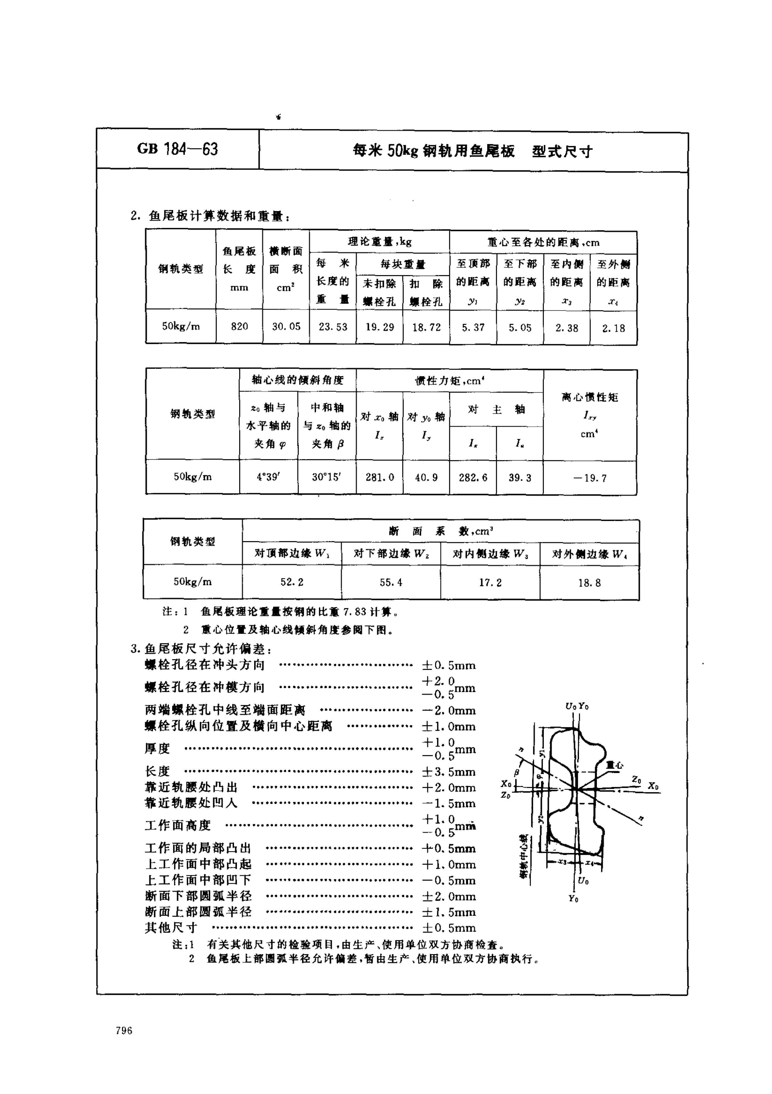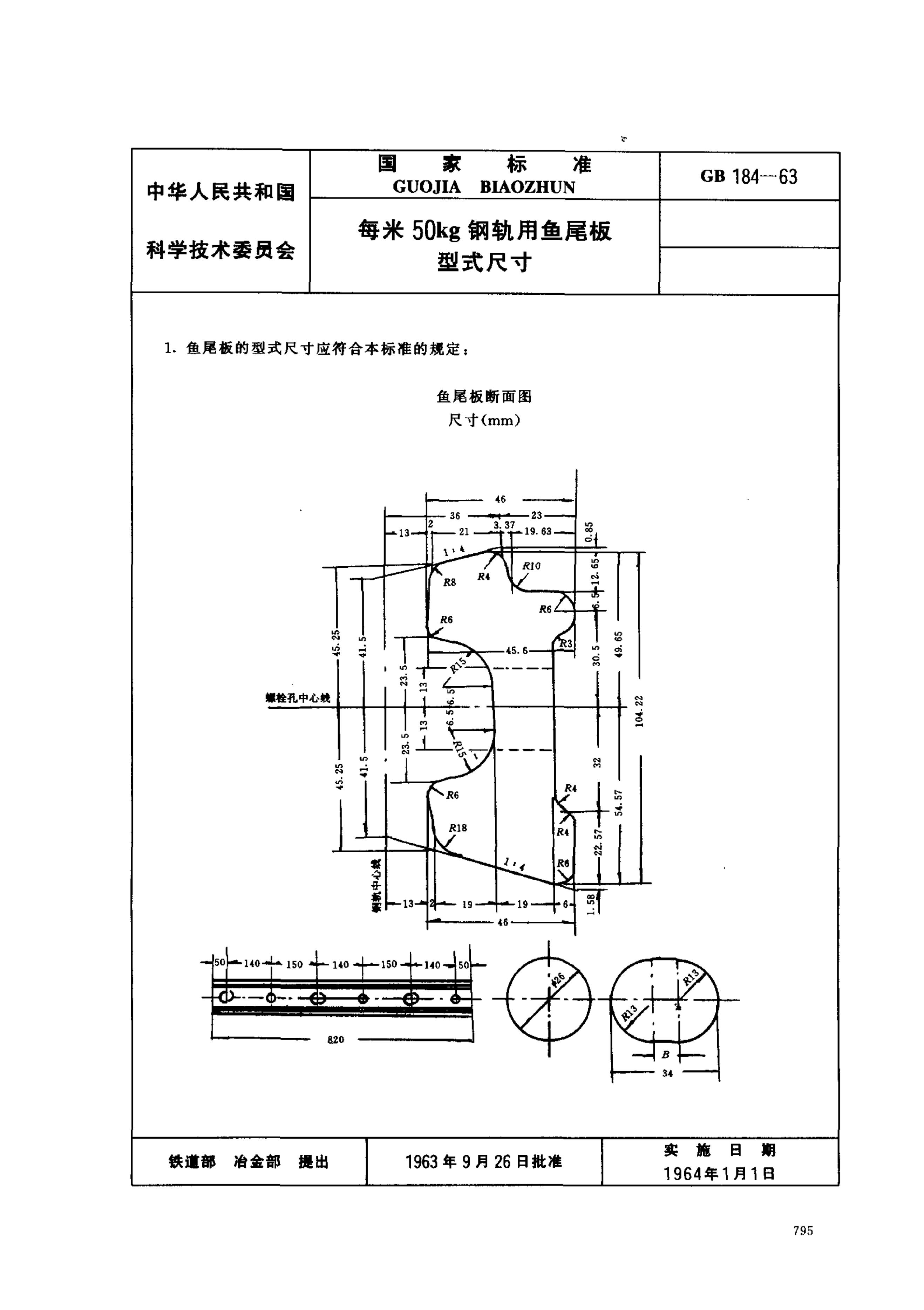 GB/T 184-1963 每米50公斤钢轨用鱼尾板式尺寸