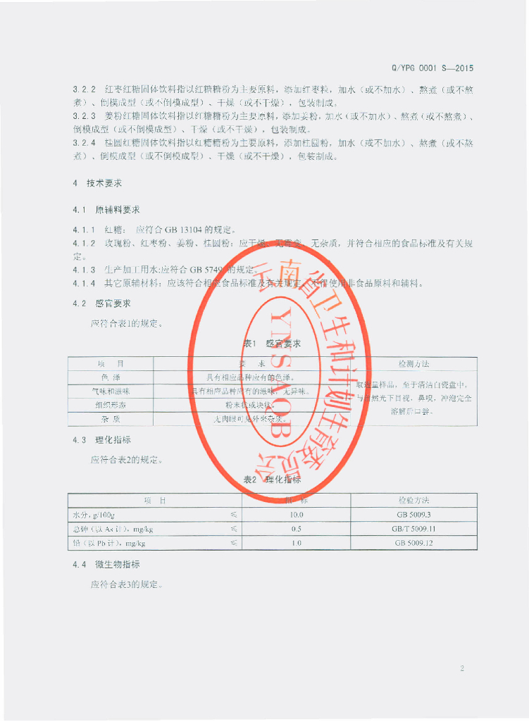 Q/YPG 0001S-2015 云南原品阁食品有限公司 固体饮料