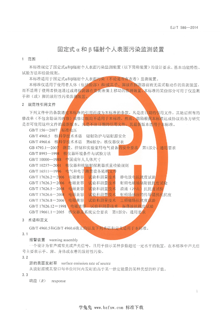 EJ/T 586-2014 固定式 α 和 β 辐射个人表面污染监测装置