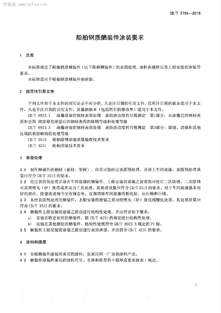 CB/T 3798-2016 船舶钢质舾装件涂装要求