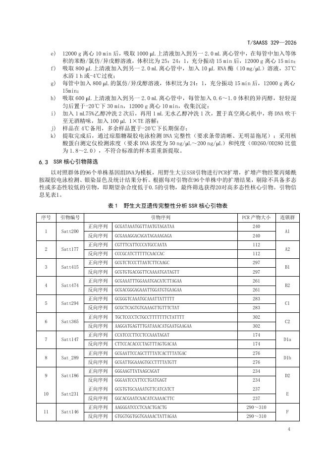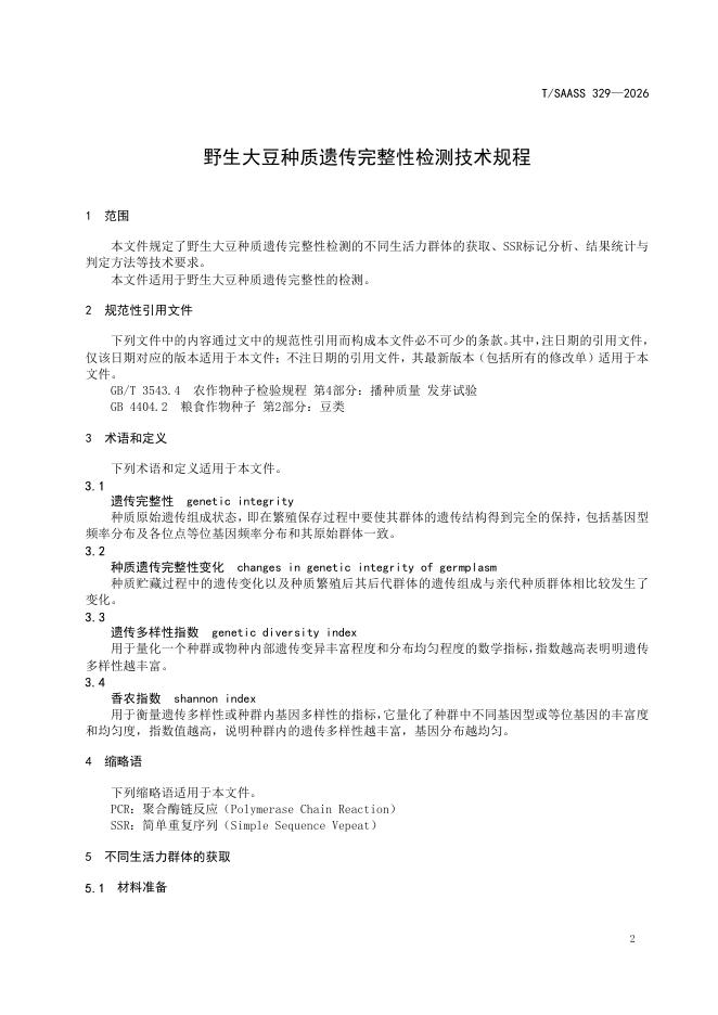 T/SAASS 329-2026 野生大豆种质遗传完整性检测技术规程