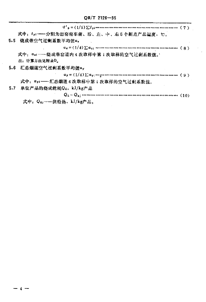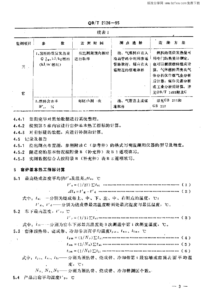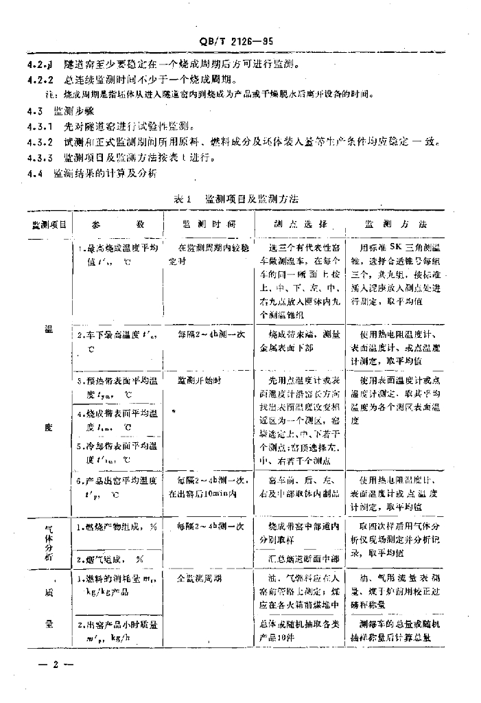 QB/T 2126-1995 日用陶瓷火焰隧道窑热工性能指标监测与计算方法