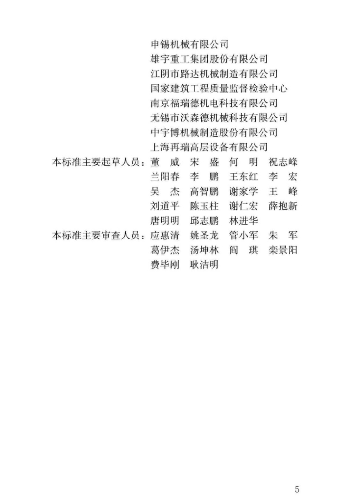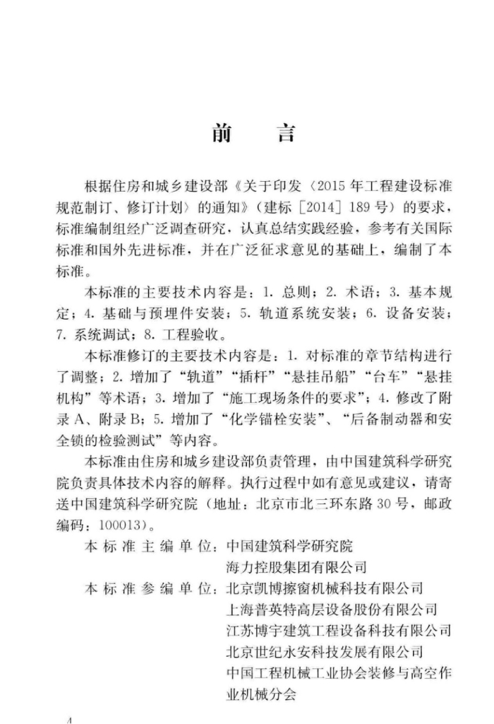 中国建筑科学研究院、海力控股集团有限公司、北京凯博擦窗机械科技有限公司、上海普英特高层设备股份有限公司、江苏博宇建筑工程设备科技有限公司、北京世纪永安科技发展有限公司、中国工程机械工业协会装修与高空作业机械分会、申锡机械有限公司、雄宇重工集团股份有限公司、江阴市路达机械制造有限公司、国家建筑工程质量监督检验中心、南京福瑞德机电科技有限公司、无锡市沃森德机械科技有限公司、中宇博机械制造股份有限公司、上海再瑞高层设备有限公司