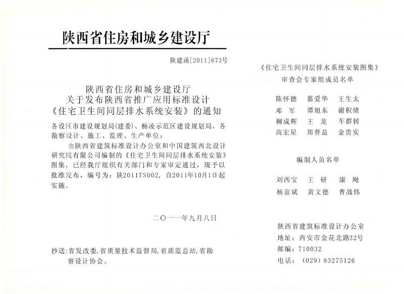 陕2011TS002 住宅卫生间同层排水系统安装图集