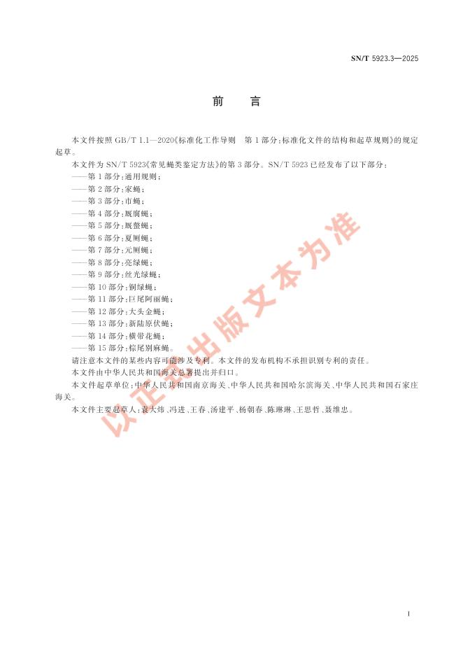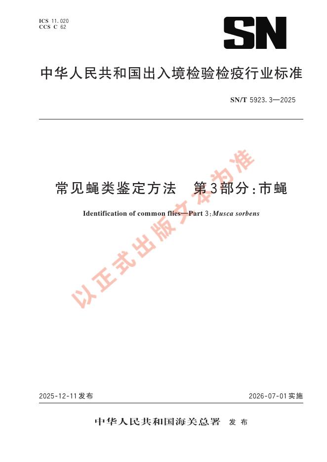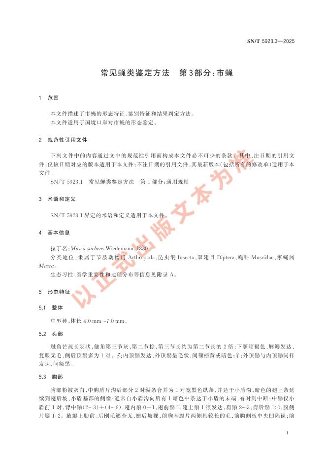 SN/T 5923.3-2025 常见蝇类鉴定方法 第3部分:市蝇