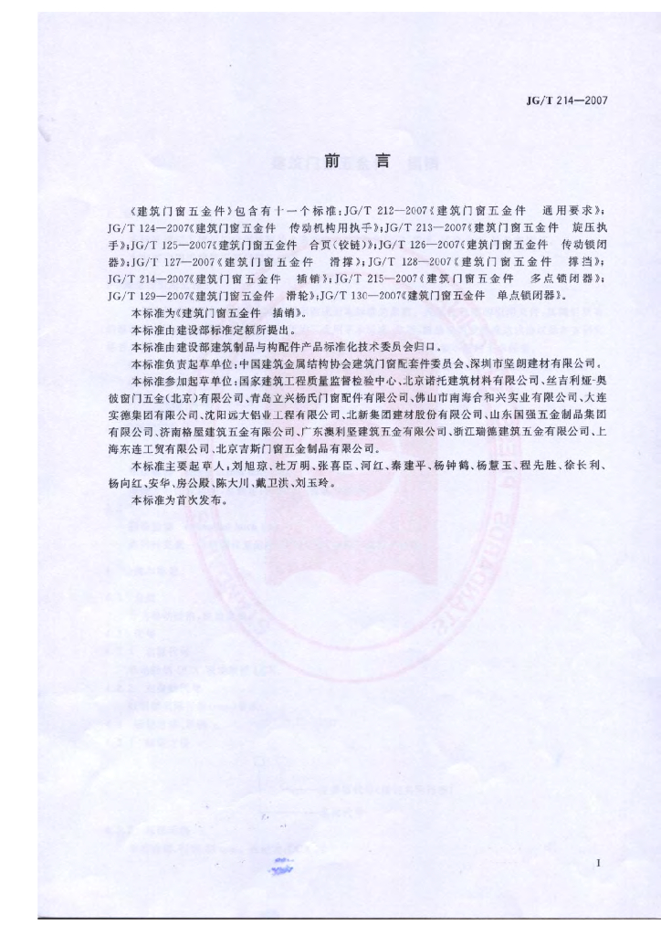 中国建筑金属结构协会建筑门窗配套件委员会、深圳市坚朗建材有限公司等