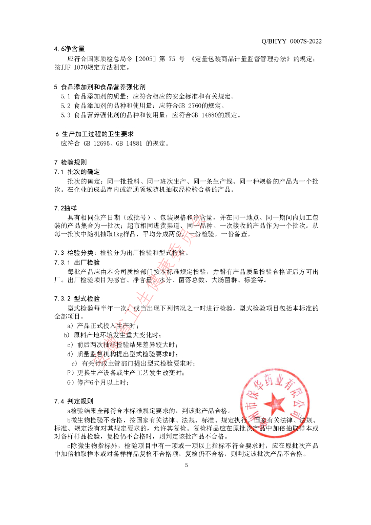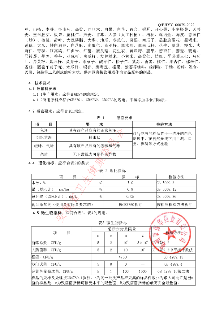 Q/BHYY 0007S-2022 杏仁粉