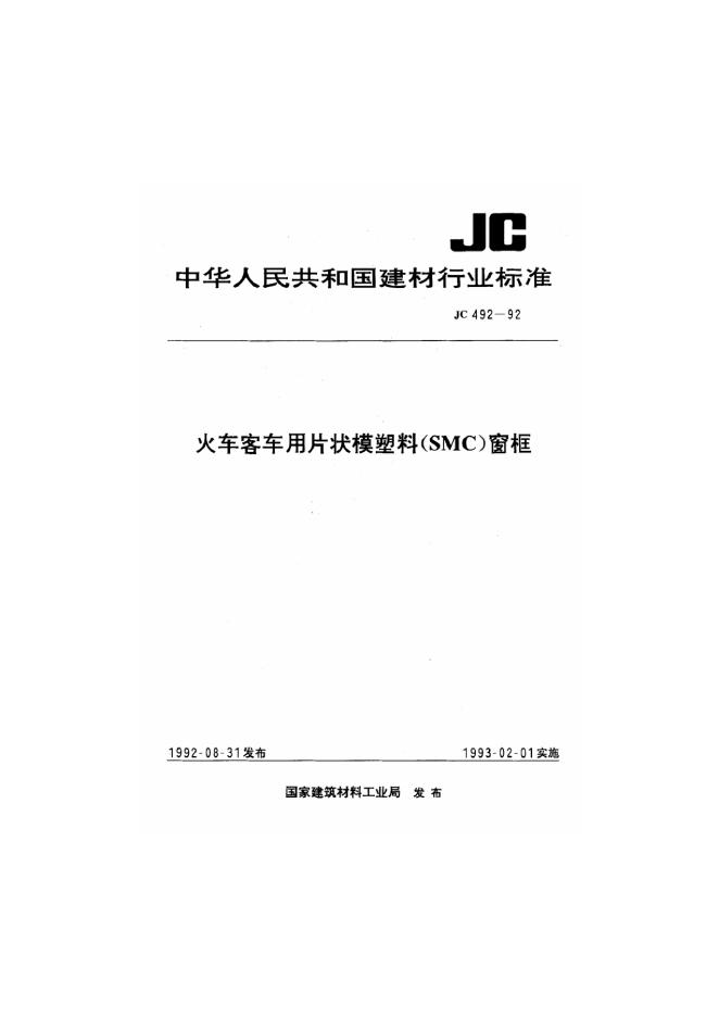 JC 492-1991 火车客车用片状模塑料SMC窗框