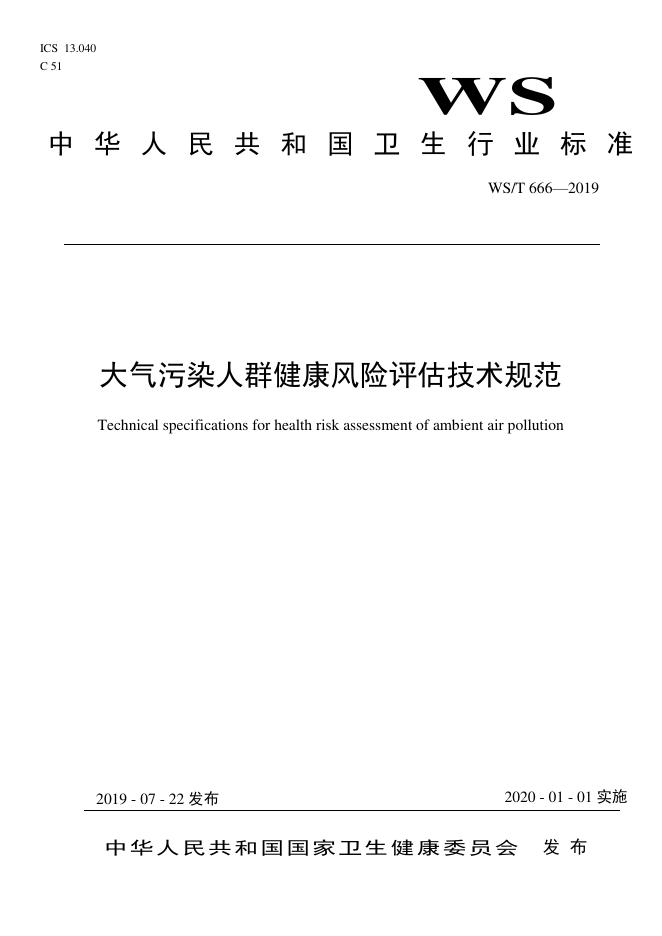 WS/T 666-2019 大气污染人群健康风险评估技术规范