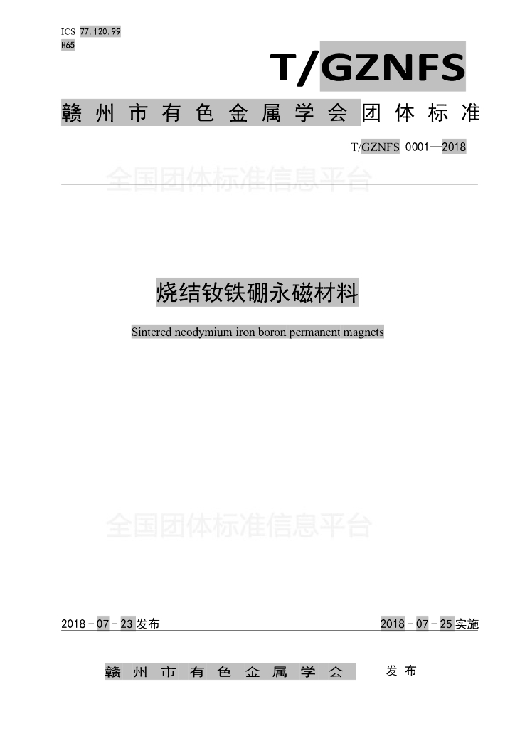 赣州市钜磁科技有限公司、国家钨与稀土产品质量监督检验中心、赣州富尔特电子股份有限公司、赣州嘉通新材料有限公司、赣州经开区质监分局、江西荧光磁业有限公司、江西金力永磁科技股份有限公司、赣州华京稀土新材料有限公司、赣州东磁稀土有限公司、赣州有色冶金研究所。