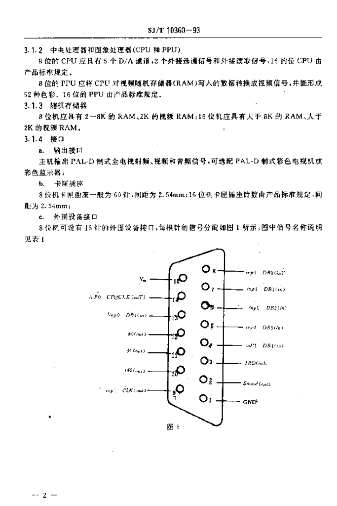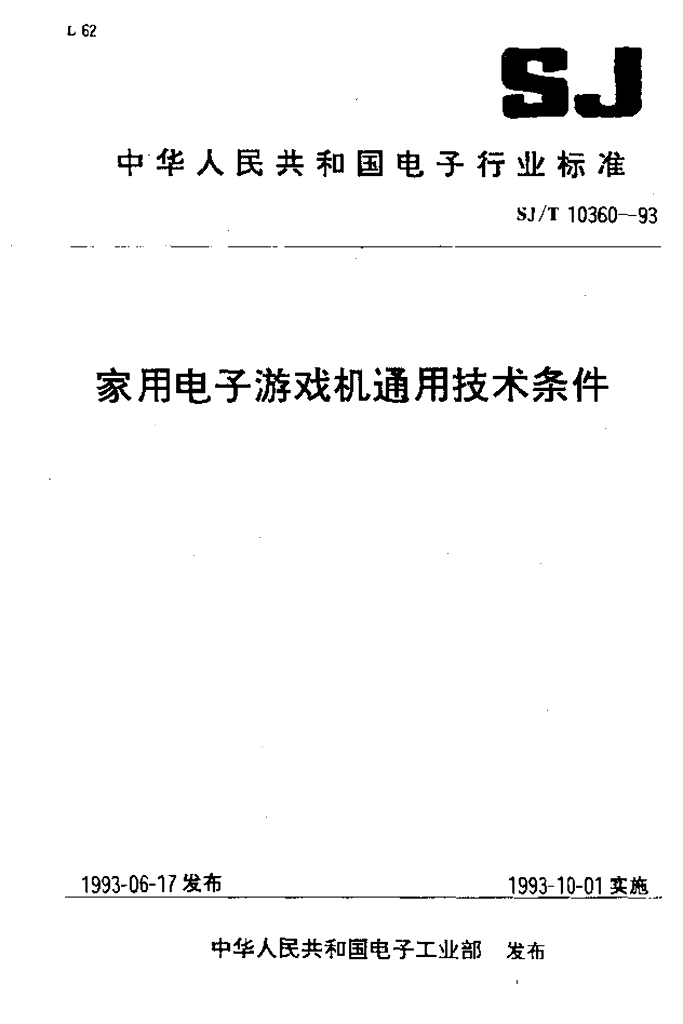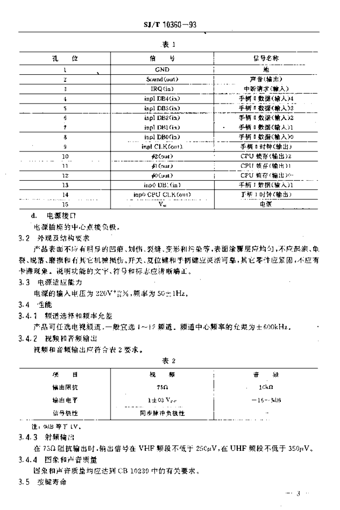 SJ/T 10360-1993 家用电子游戏机通用技术条件