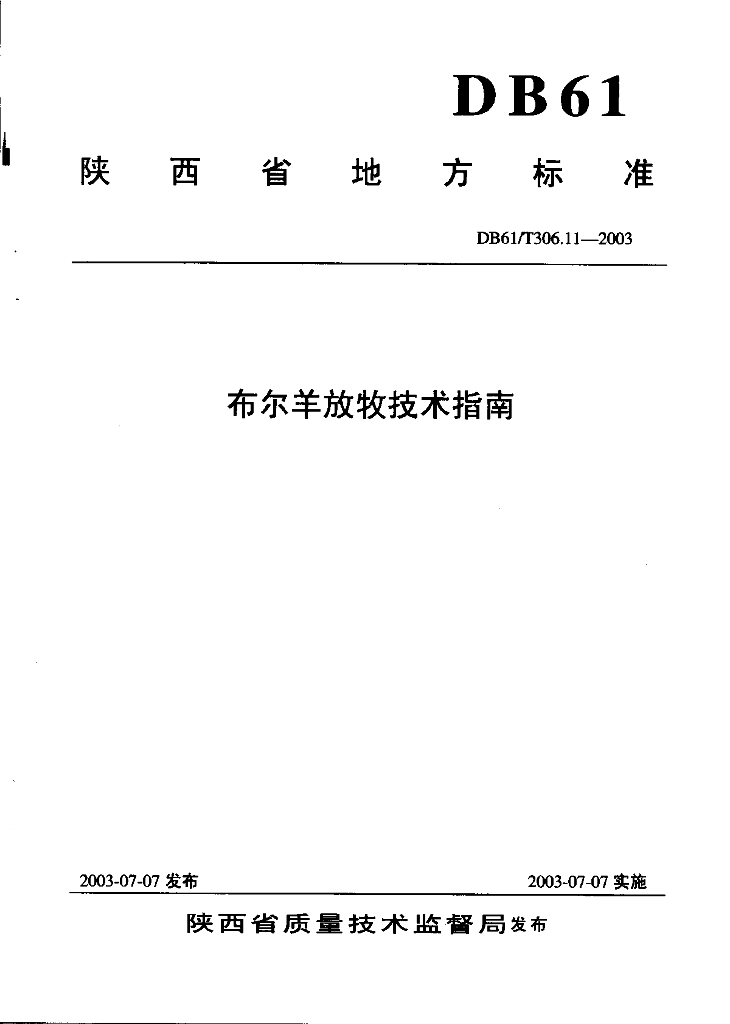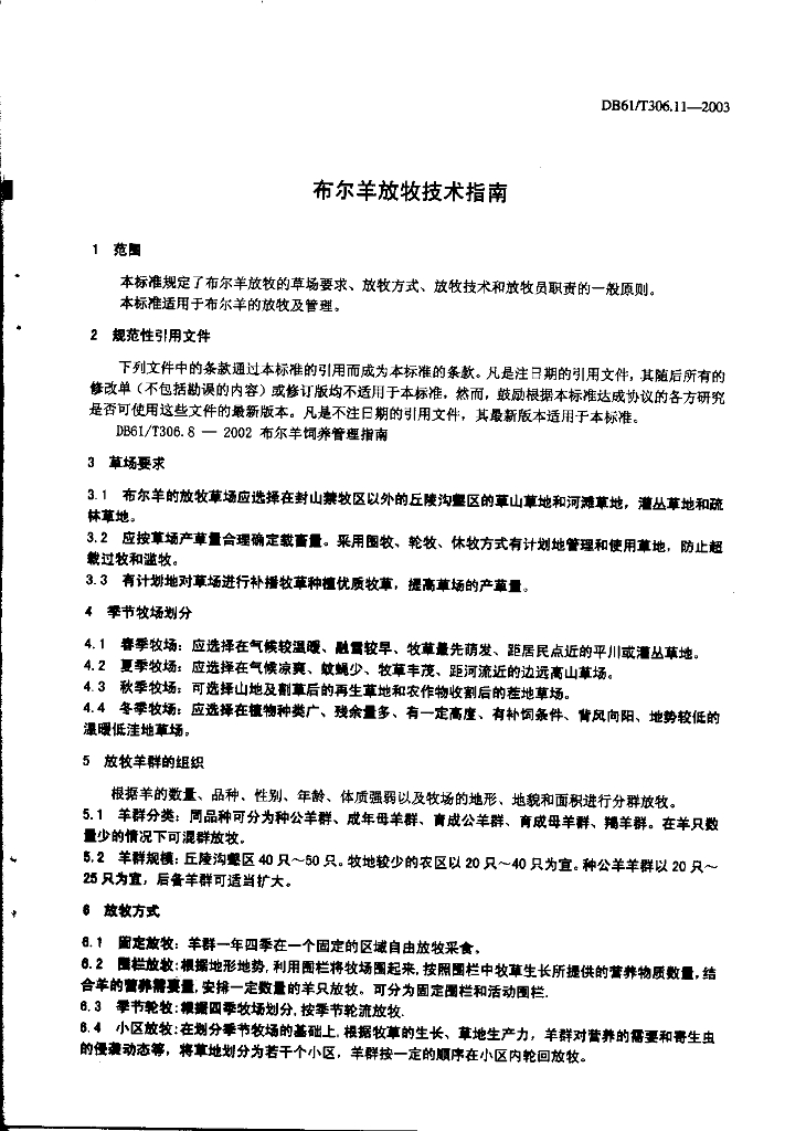 DB61/T 306.11-2003 布尔羊放牧技术指南