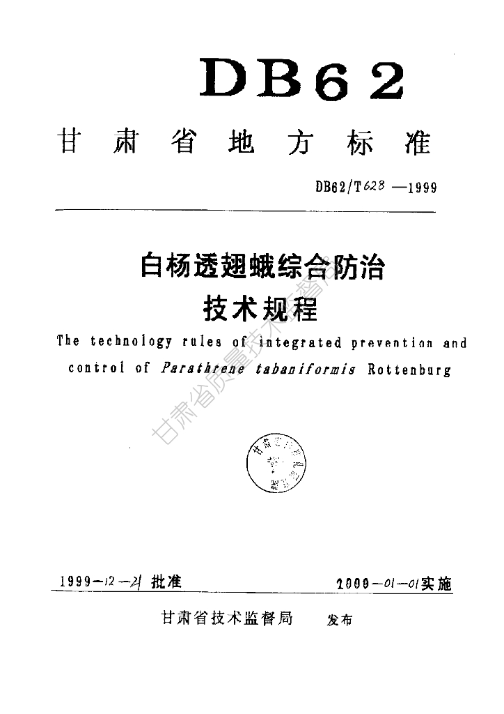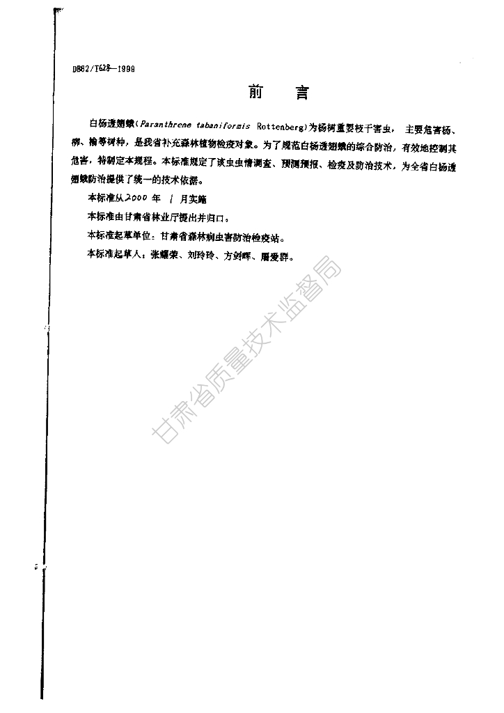 DB62/T 628-1999 白杨透翅蛾综合技术规程