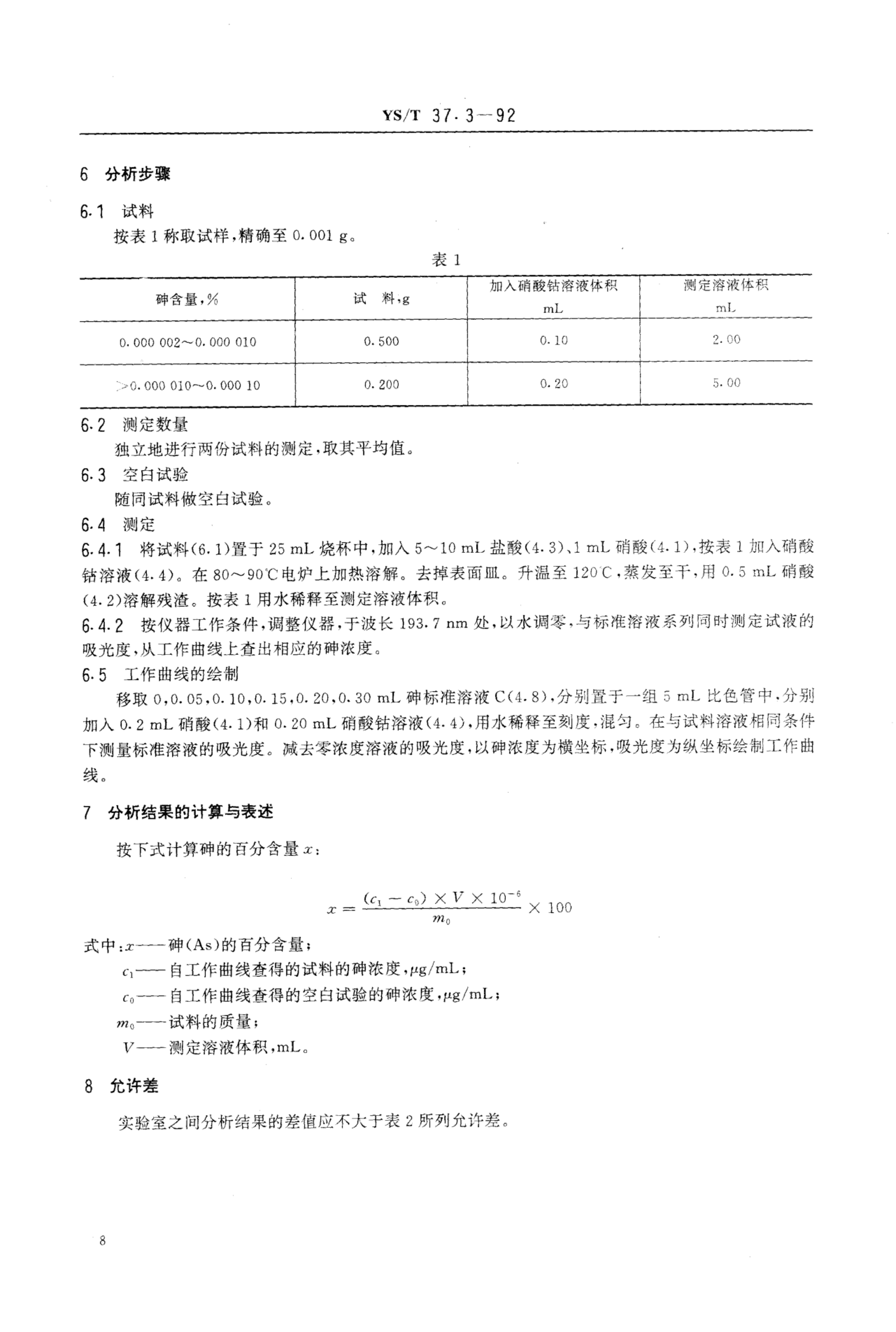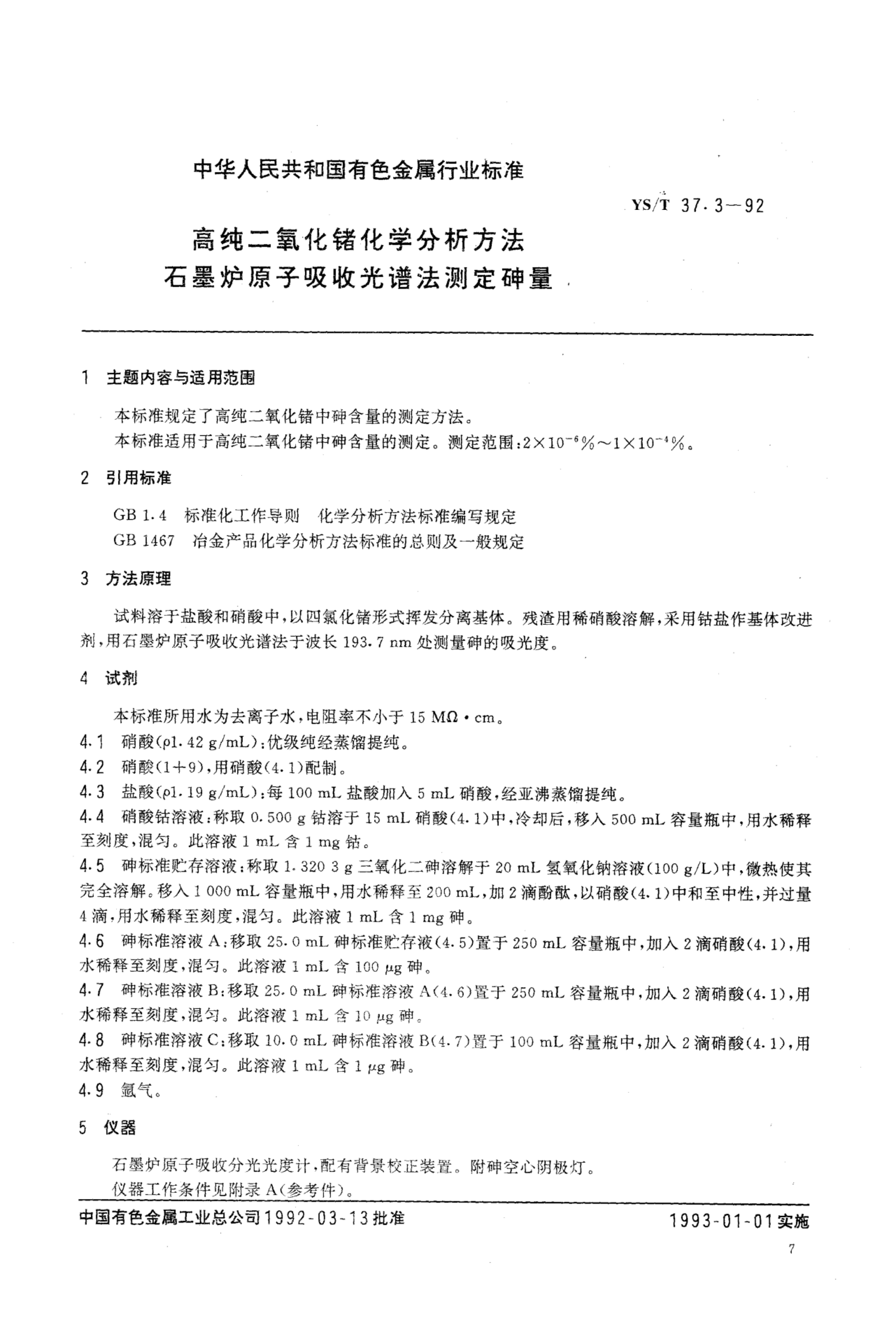 YS/T 37.3-1992 高纯二氧化锗化学分析方法石墨炉原子吸收光谱法测定砷量