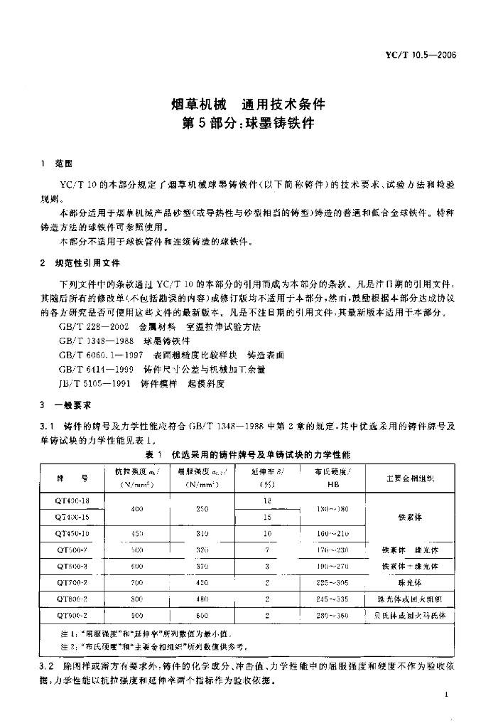 YC/T 10.5-2006 烟草机械通用技术条件 第5部分:球墨铸铁件