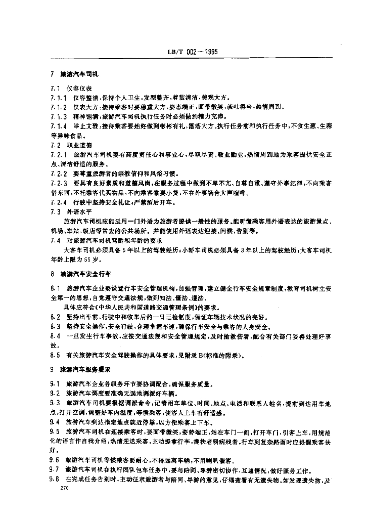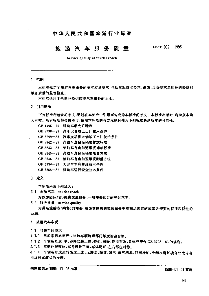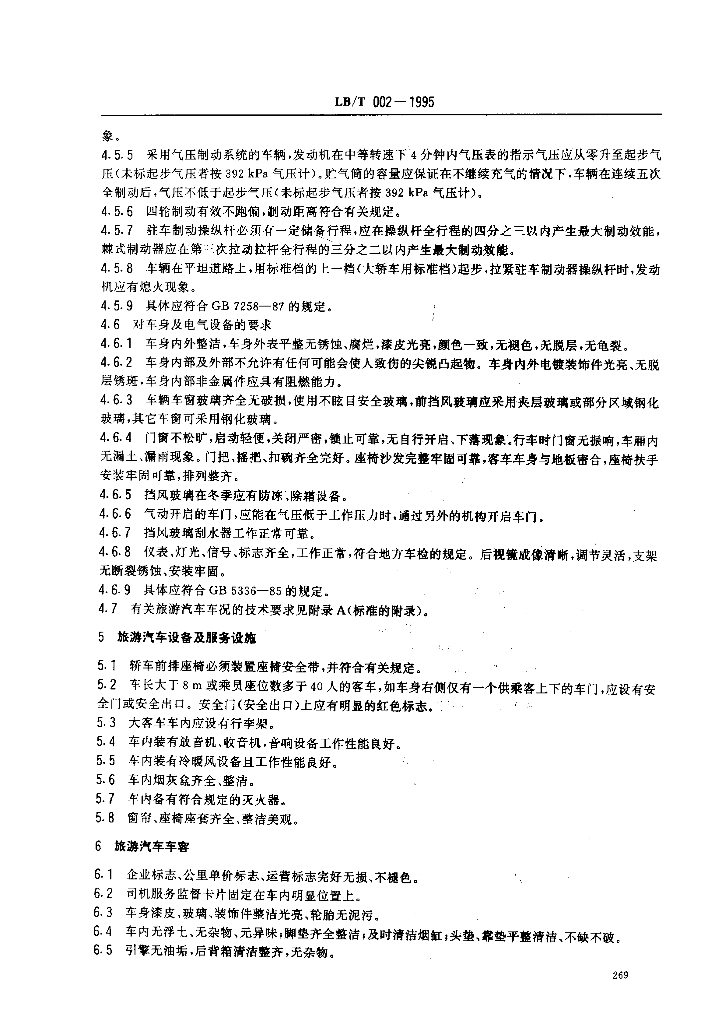 LB/T 002-1995 旅游汽车服务质量