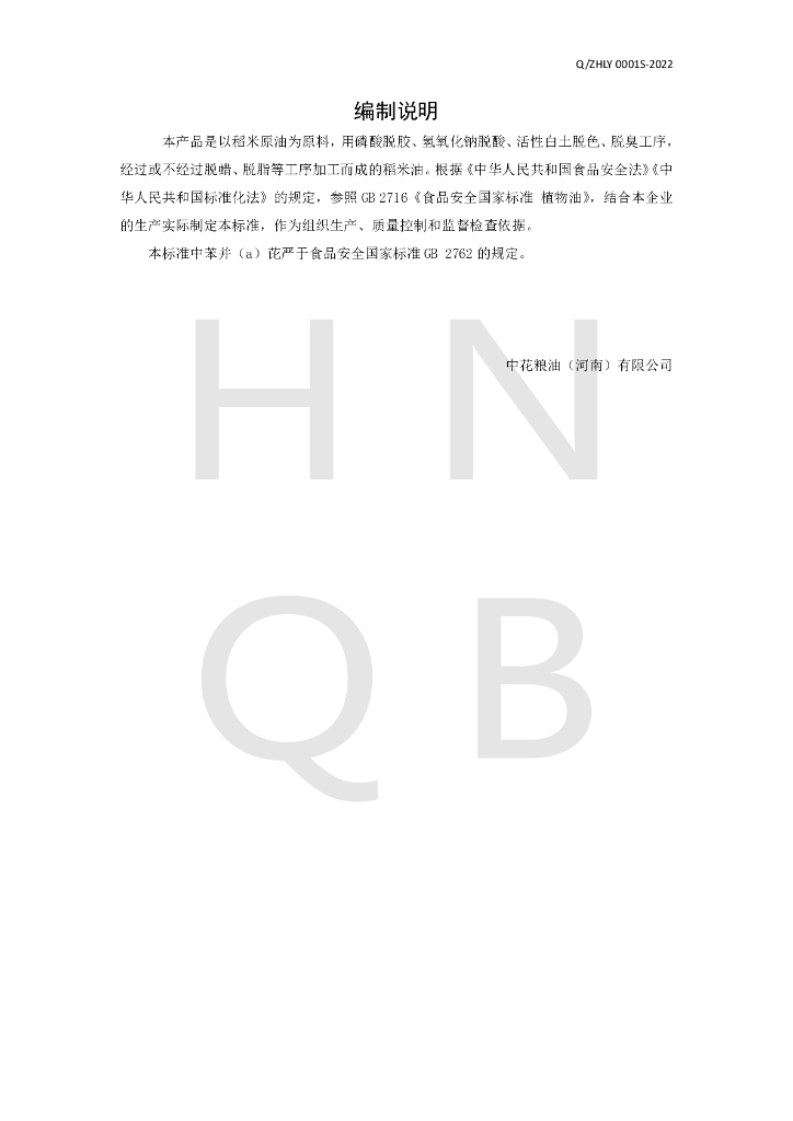 Q/ZHLY 0001S-2022 稻米油