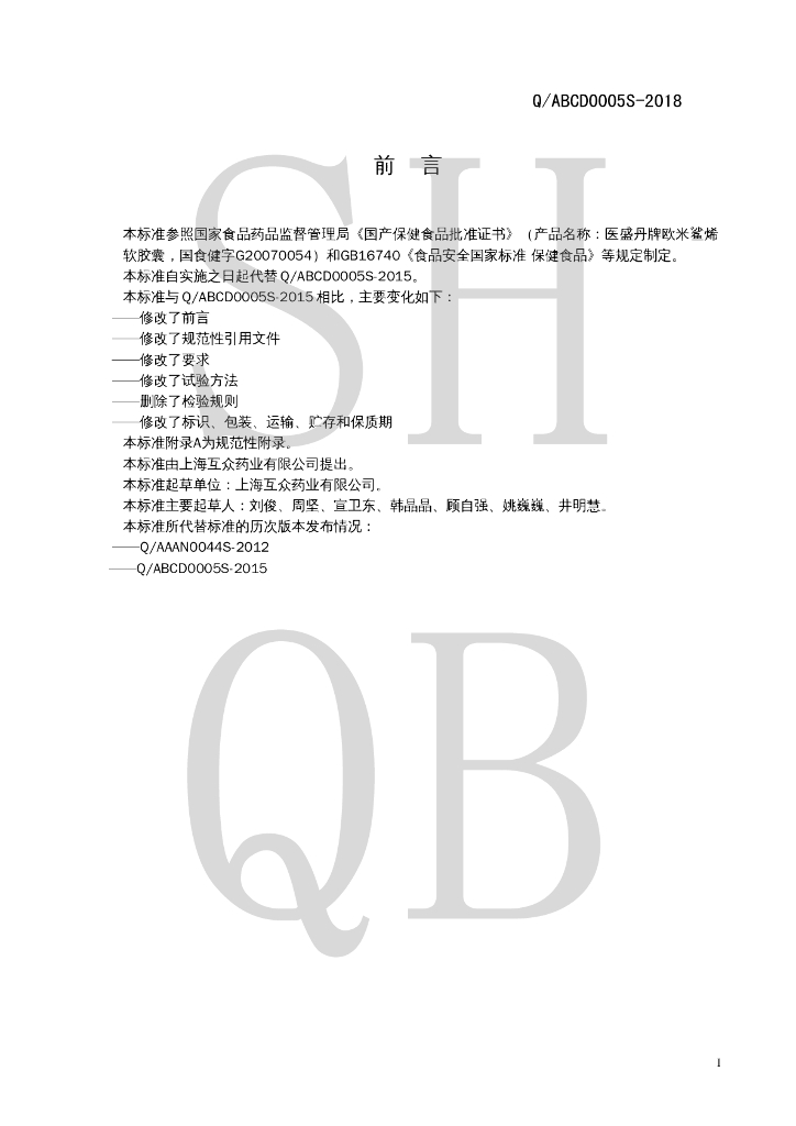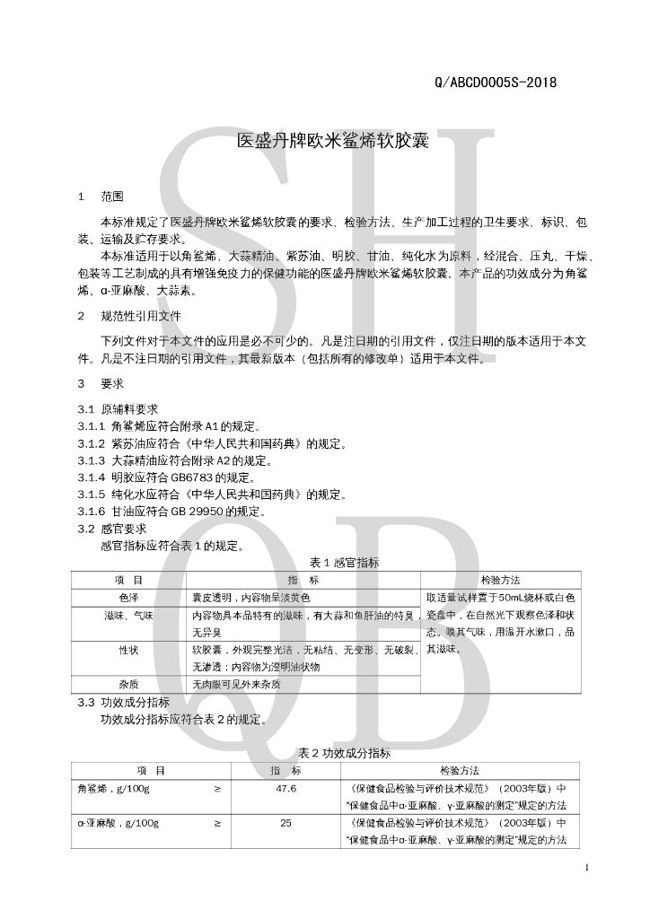Q/ABCD 0005S-2018 医盛丹牌欧米鲨烯软胶囊