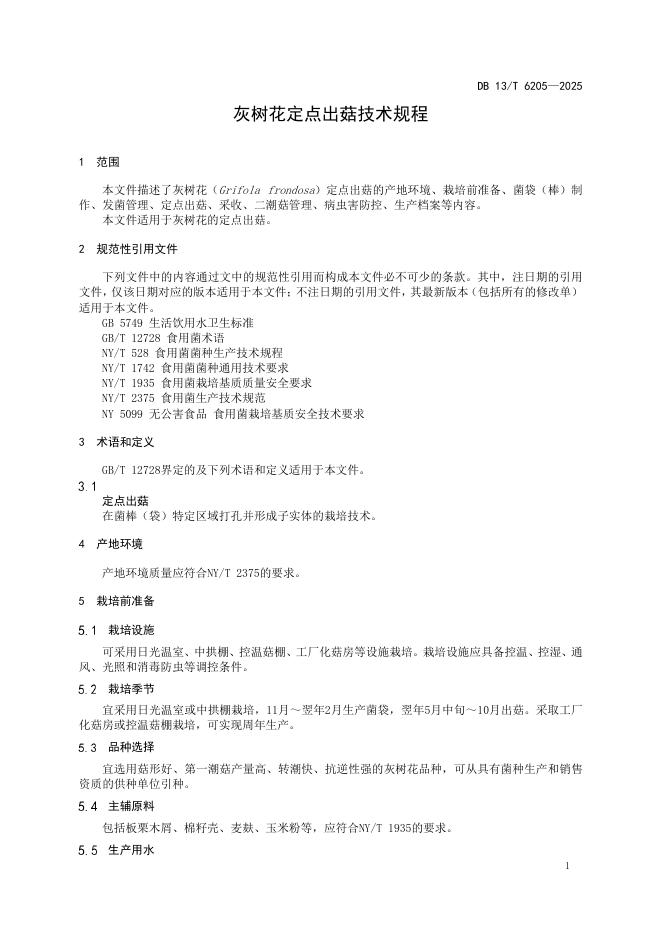 DB13/T 6205-2025 灰树花定点出菇技术规程