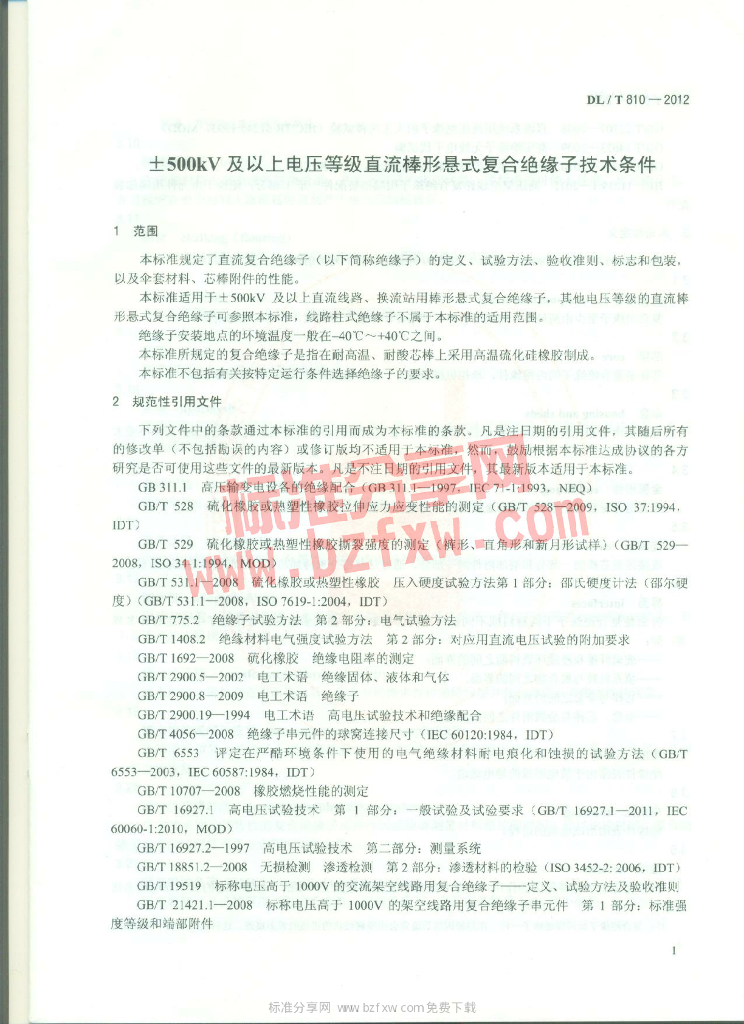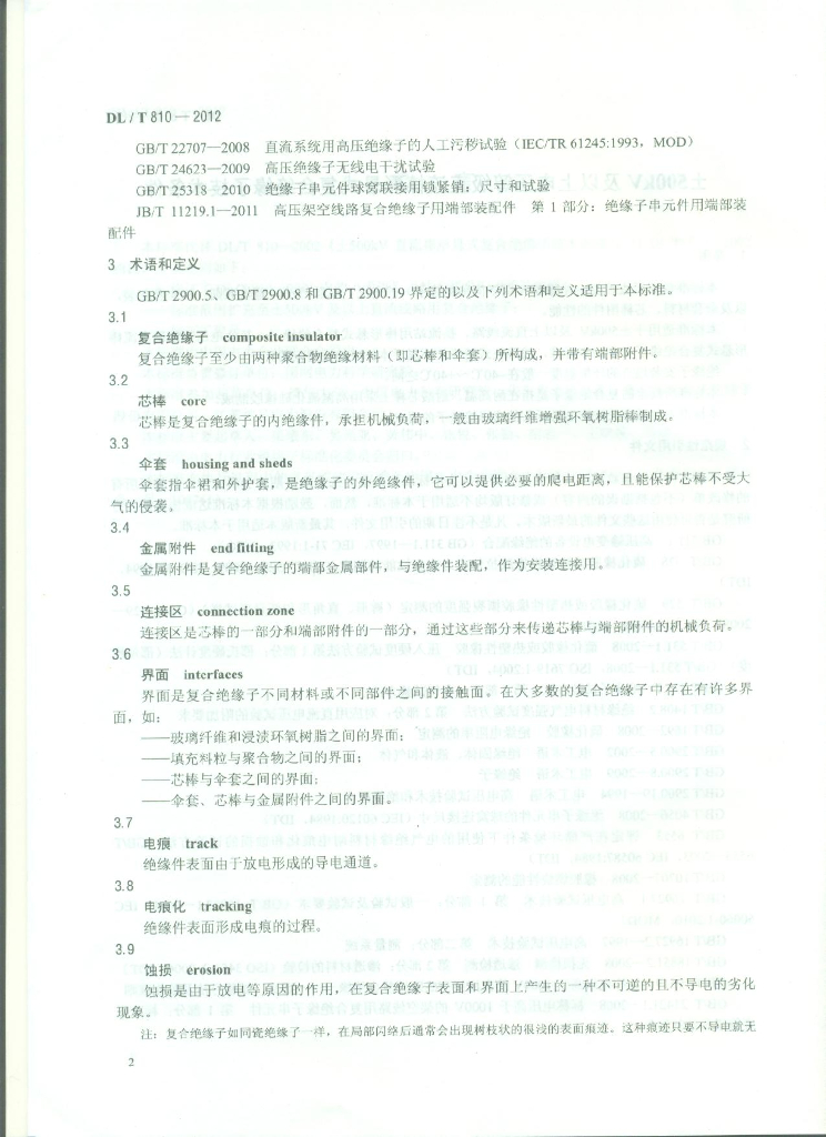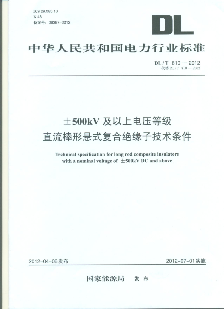 DL/T 810-2012 ±500kV及以上电压等级直流棒形悬式复合绝缘子技术条件