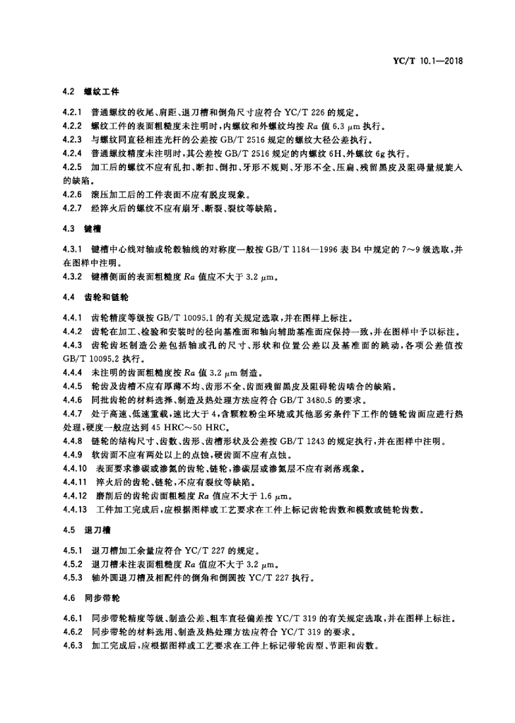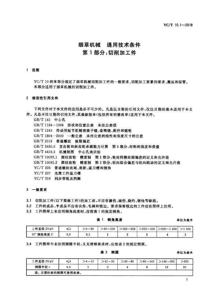 YC/T 10.1-2018 烟草机械通用技术条件 第1部分:切削加工件