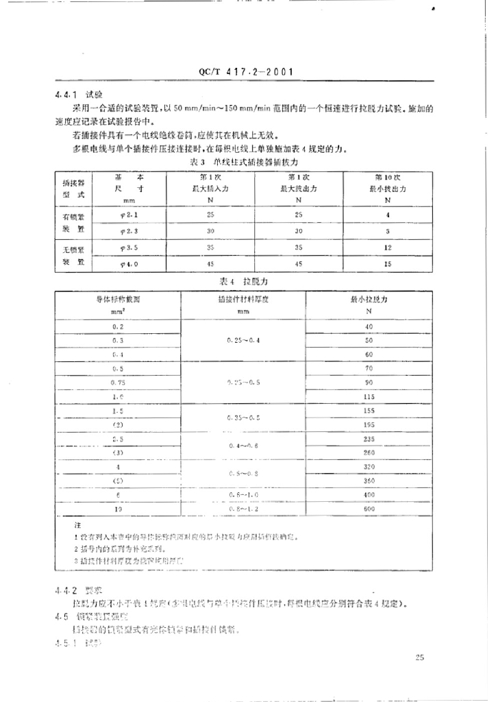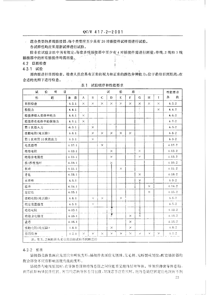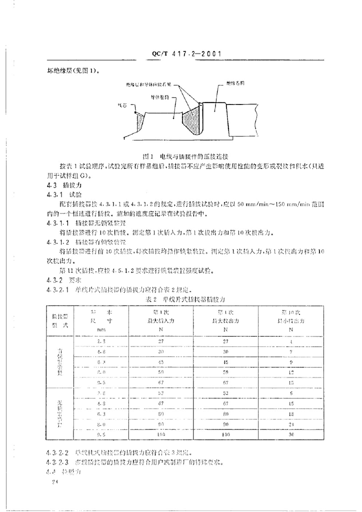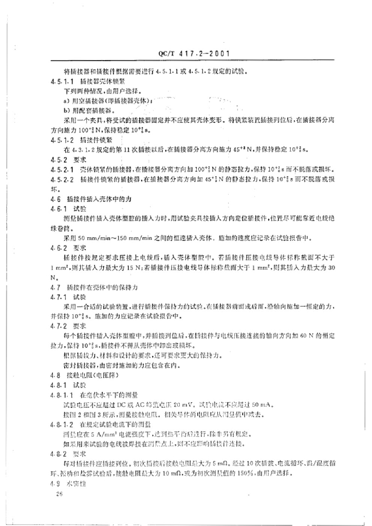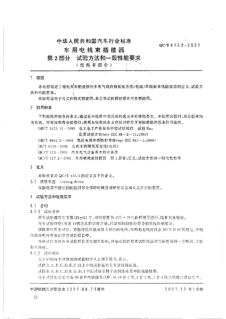 QC/T 417.2-2001 车用电线束插接器 第2部分 试验方法和一般性能要求(摩托车部分)