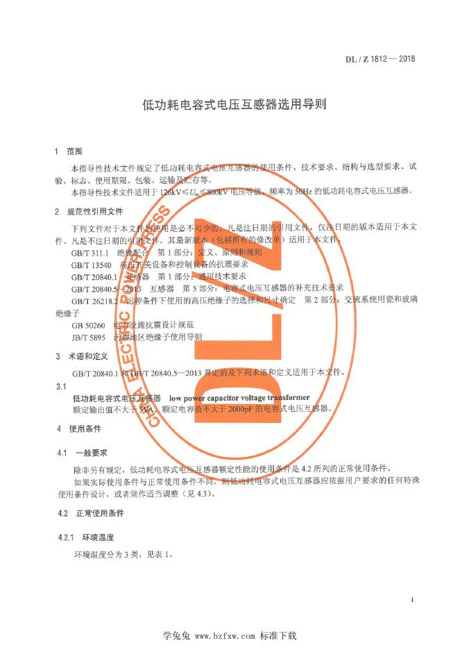 DL/Z 1812-2018 低功耗电容式电压互感器选用导则