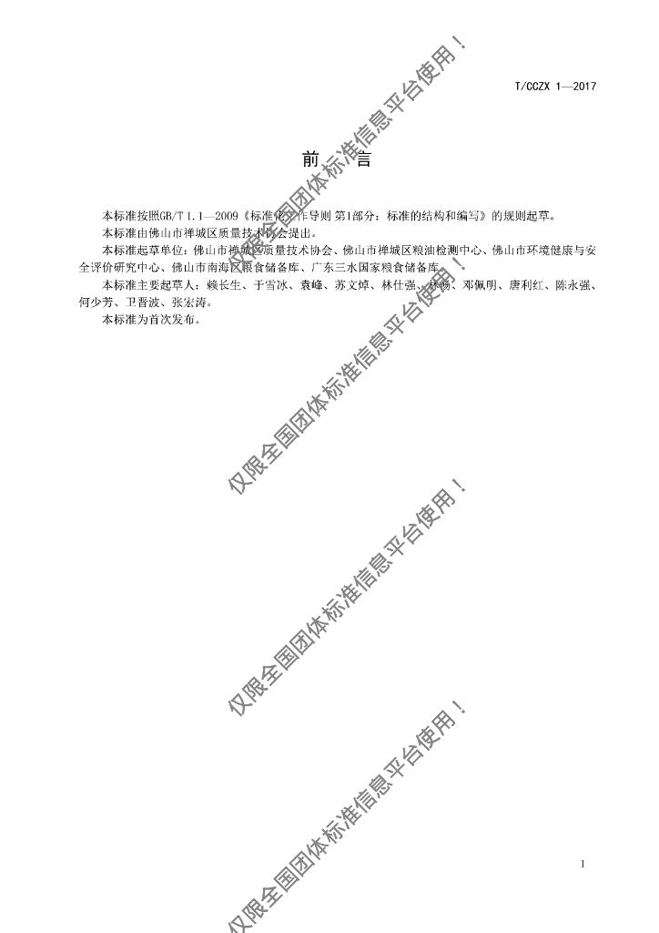 本标准主要起草单位:佛山市禅城区质量技术协会、佛山市禅城区粮油检测中心、佛山市环境健康与安全评价研究中心、佛山市南海区粮食储备库、广东三水国家粮食储备库