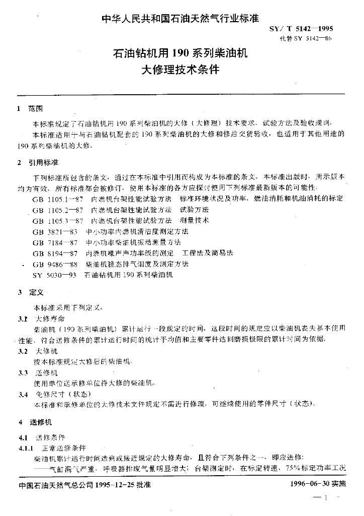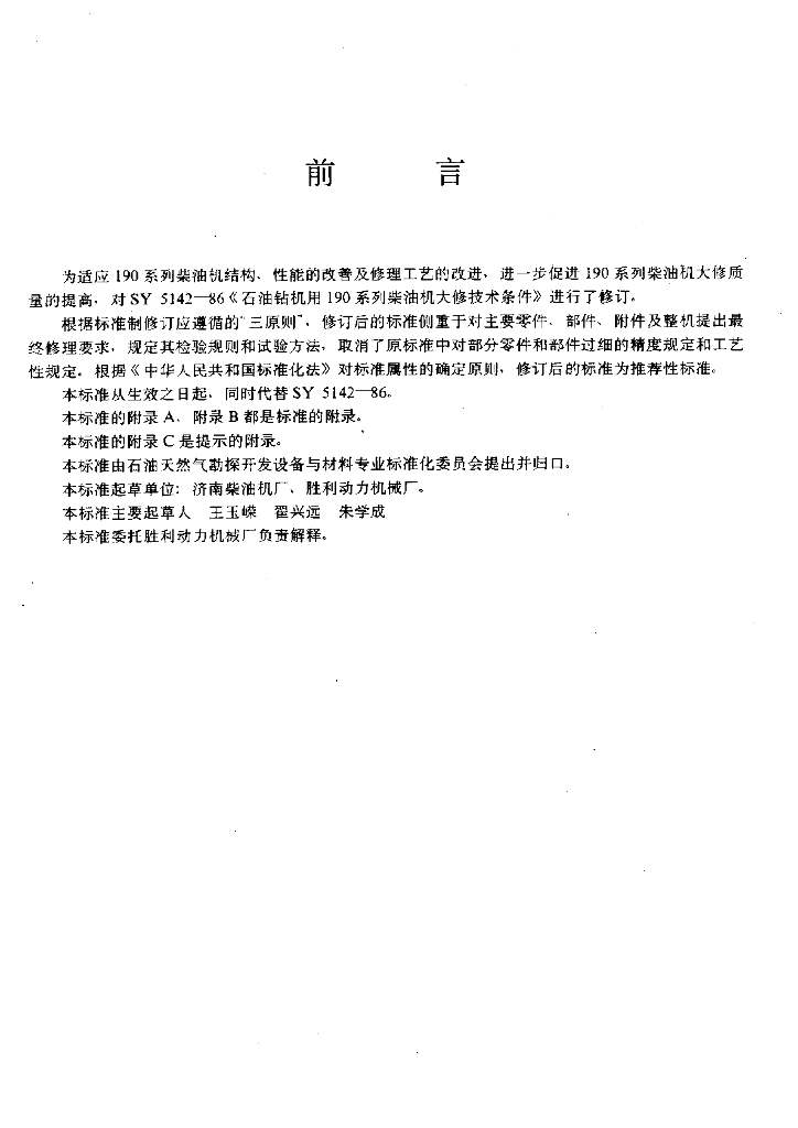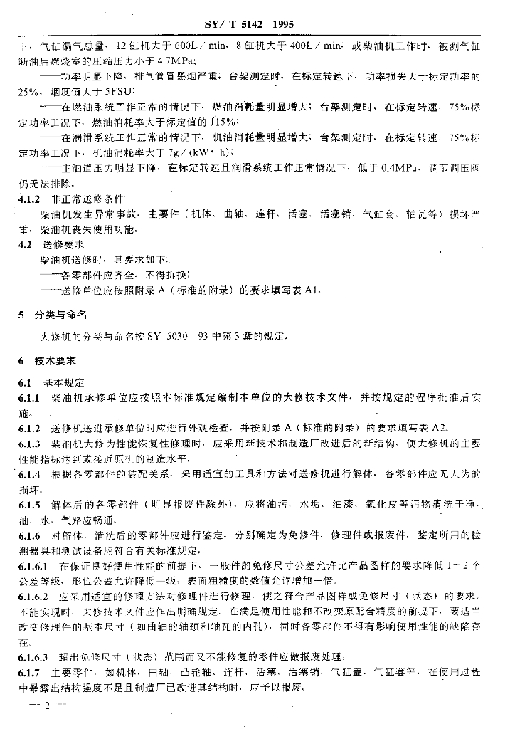 SY/T 5142-1995 石油钻机用190系列柴油机大修理技术条件