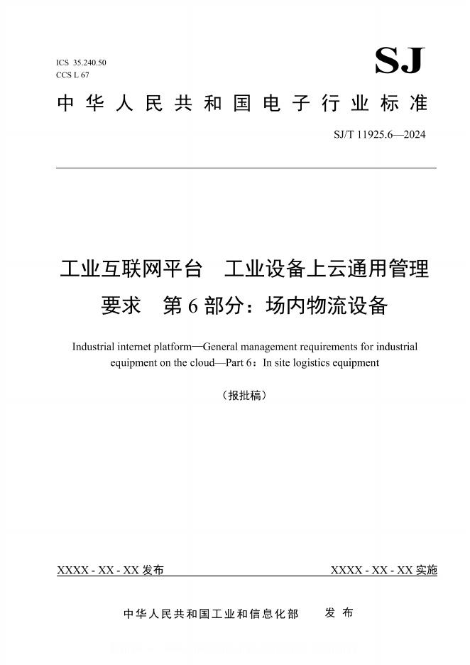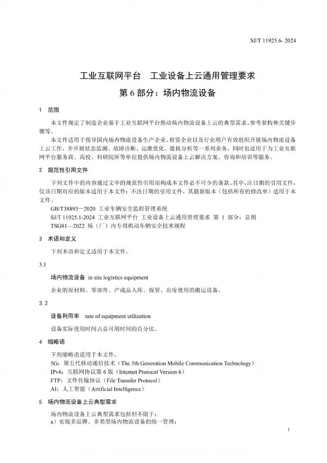 SJ/T 11925.6-2024 工业互联网平台 工业设备上云通用管理要求 第6部分:场内物流设备(报批稿)