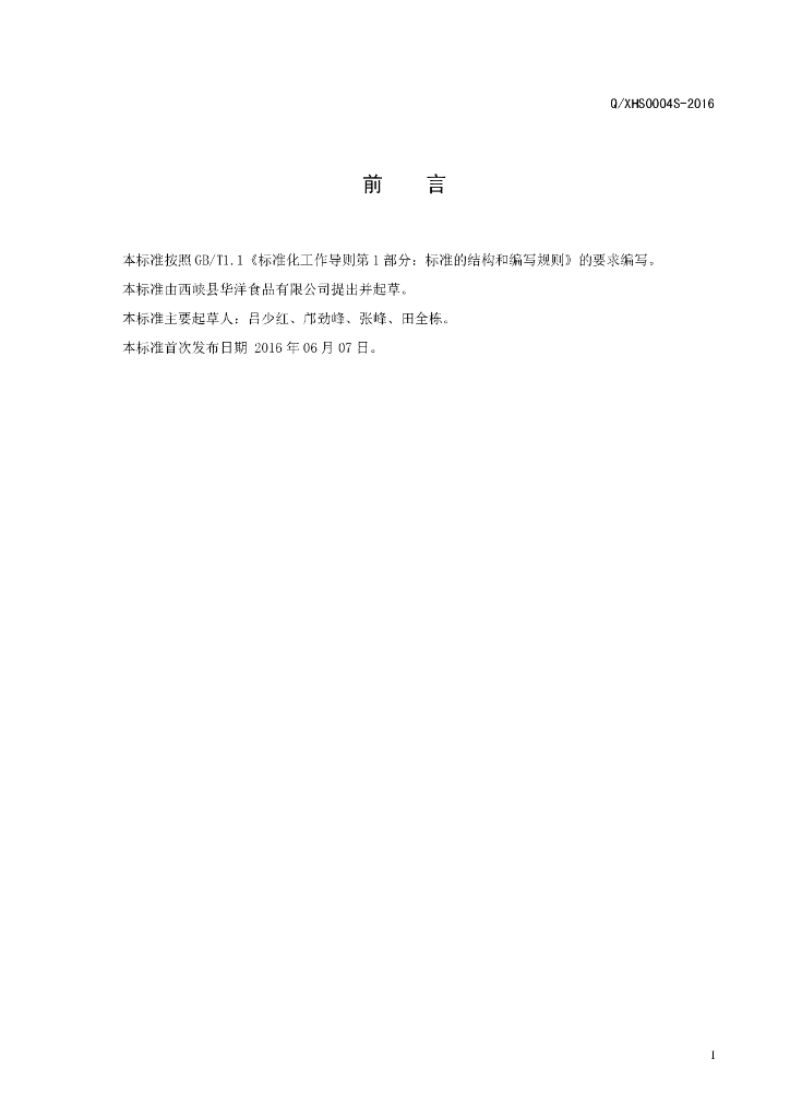 Q/XHS 0004S-2016 西峡县华洋食品有限公司 香菇粉制品