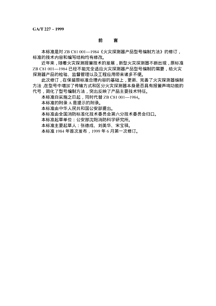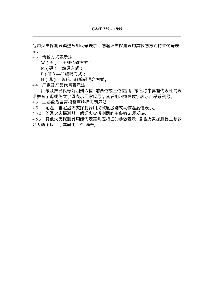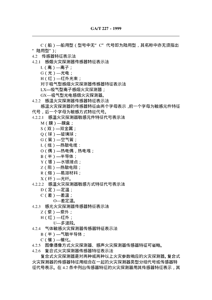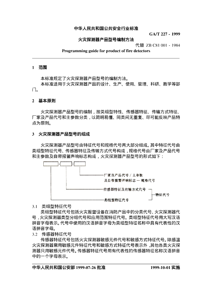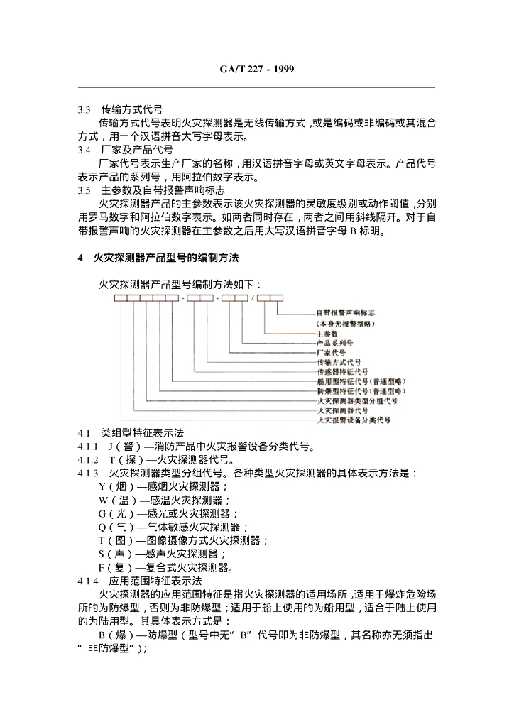 GA/T 227-1999 火灾探测器产品型号编制方法